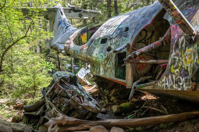 Das gesamte Flugzeug ist heute über und über mit Graffiti bedeckt. Was einst ein militärisches Objekt war, ist nun zugleich Leinwand für neue Ausdrucksformen geworden. Manche dieser Zeichnungen wirken respektlos, andere beinahe poetisch. Sie zeigen, wie selbst Orte des Stillstands von der Gegenwart berührt werden.