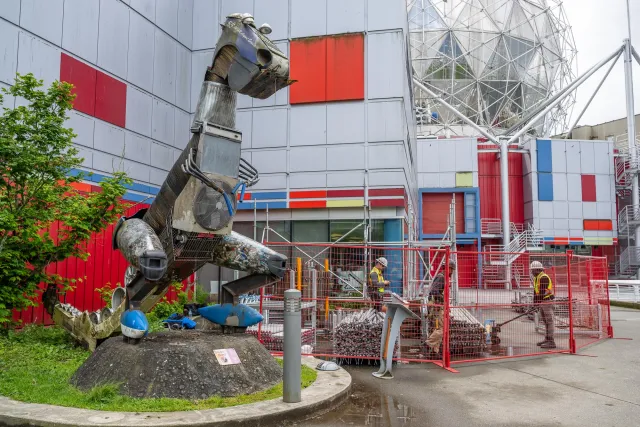 Am östlichen Ende des False Creek ragt die silberne Kuppel von Science World in den Himmel – ein Relikt der Expo 86, heute ein beliebtes Wissenschaftszentrum für Jung und Alt. Gleich daneben befindet sich das BC Place Stadium, ein technisch faszinierender Bau mit einem aufziehbaren Dach, das je nach Wetterlage geöffnet oder geschlossen wird. Von Science World aus lässt sich das Stadion besonders gut fotografieren – idealerweise in der Abenddämmerung, wenn das Dach farbig illuminiert wird.