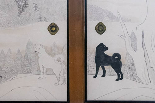 Die schwarzen und weißen Hunde verkörpern Yin und Yang – Dualität, die in der Einheit aufgehoben wird.