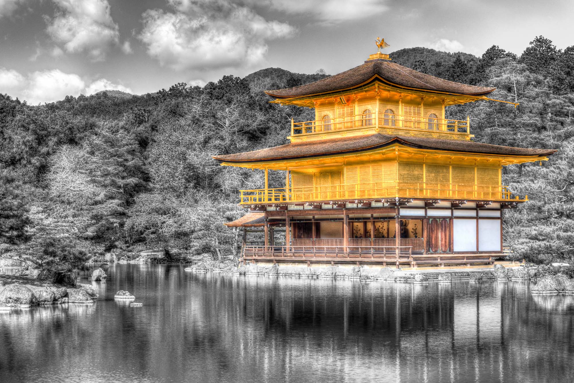 Das hier gezeigte Werk nutzt die Colorkey-Technik, bei der das Bild überwiegend in Schwarzweiß dargestellt wird, während einzelne Bildelemente farbig hervorgehoben bleiben. Im Fall des Kinkaku-ji wird so die goldene Fassade des Pavillons betont, die sich leuchtend vom zurückgenommenen Umfeld abhebt. Diese Technik lenkt den Blick des Betrachters gezielt auf das Wesentliche und macht die besondere Ästhetik des Bauwerks unmittelbar erfahrbar.