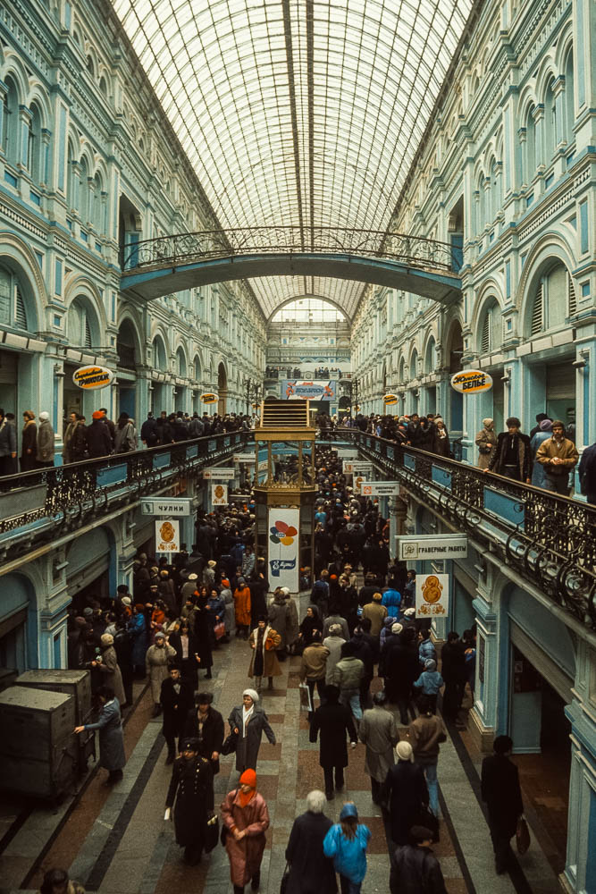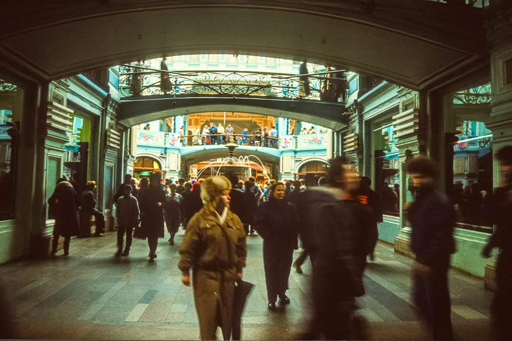 Es herrschte keine Aufbruchstimmung sondern eher die Sorge nach dem Leitsatz "schlimmer geht immer" - so dass auch im bekannten Kaufhaus "Gum" eine eher ruhige Stimmung vorherrschte. Das Gebäude des GUM befindet sich im Herzen Moskaus am Roten Platz, gegenüber dem Lenin-Mausoleum und dem Kreml.