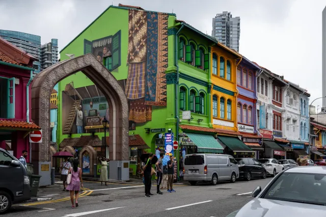 Ein Kontrast zum hochmodernen Zentrum bietet das malaiische Viertel mit seinen bunt gestrichenen Häusern, kunstvollen Wandmalereien und lebendiger Street Art. Hier lässt sich wunderbar flanieren, verweilen – und fotografieren.