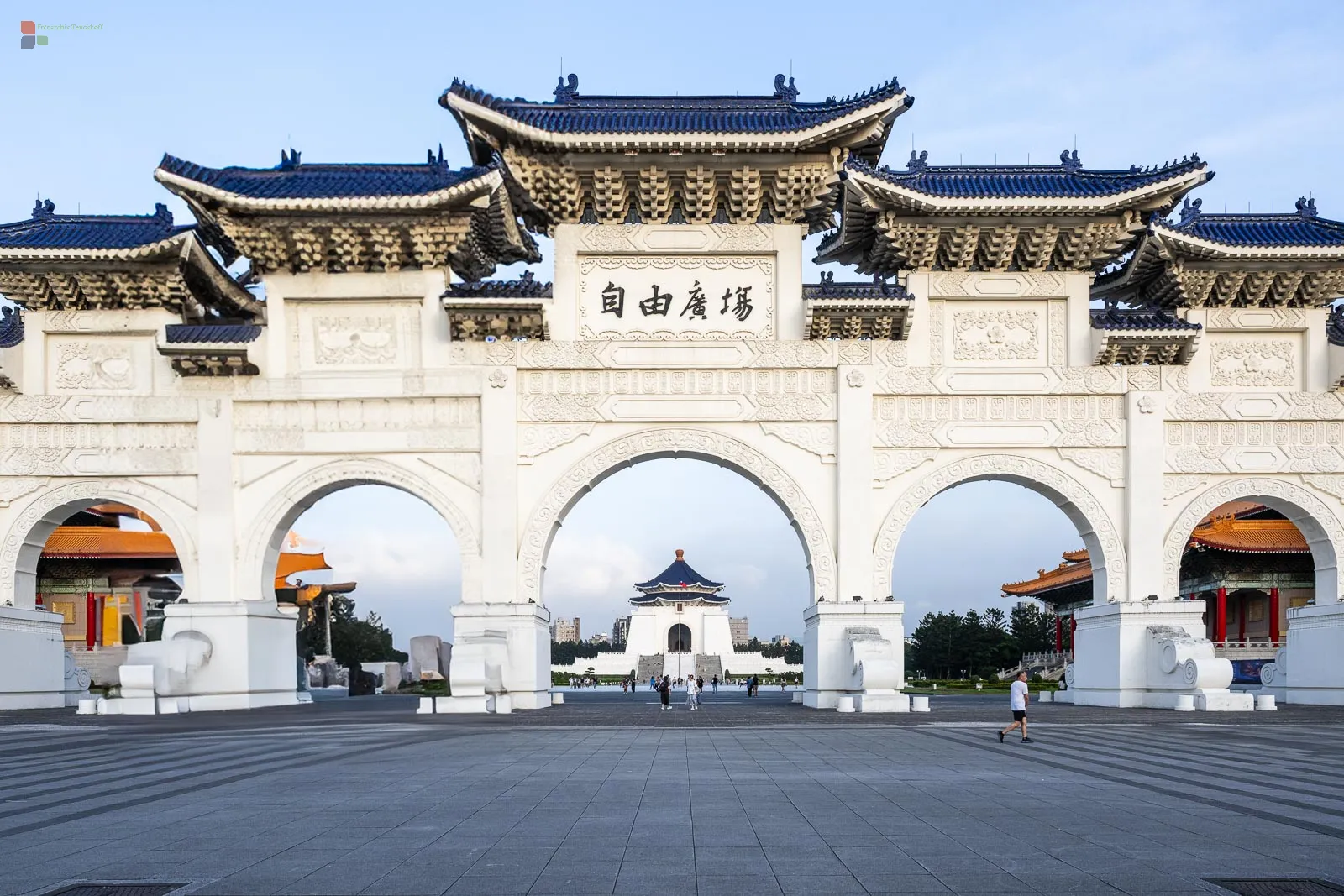 Es ist kurz vor Sonnenuntergang, als wir den weiten, weißen Platz des Chiang Kai-shek Memorials in Taipeh betreten. Die Hitze des Tages beginnt langsam zu weichen, die ersten langen Schatten zeichnen sich auf den glatt polierten Steinplatten ab. Ein Ort der Weite und des Innehaltens – und einer tiefen symbolischen Bedeutung für die Geschichte Taiwans.