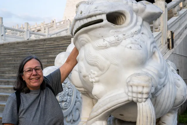 Bild 9: Karin dreht die Glückskugel im Maul des Wächters