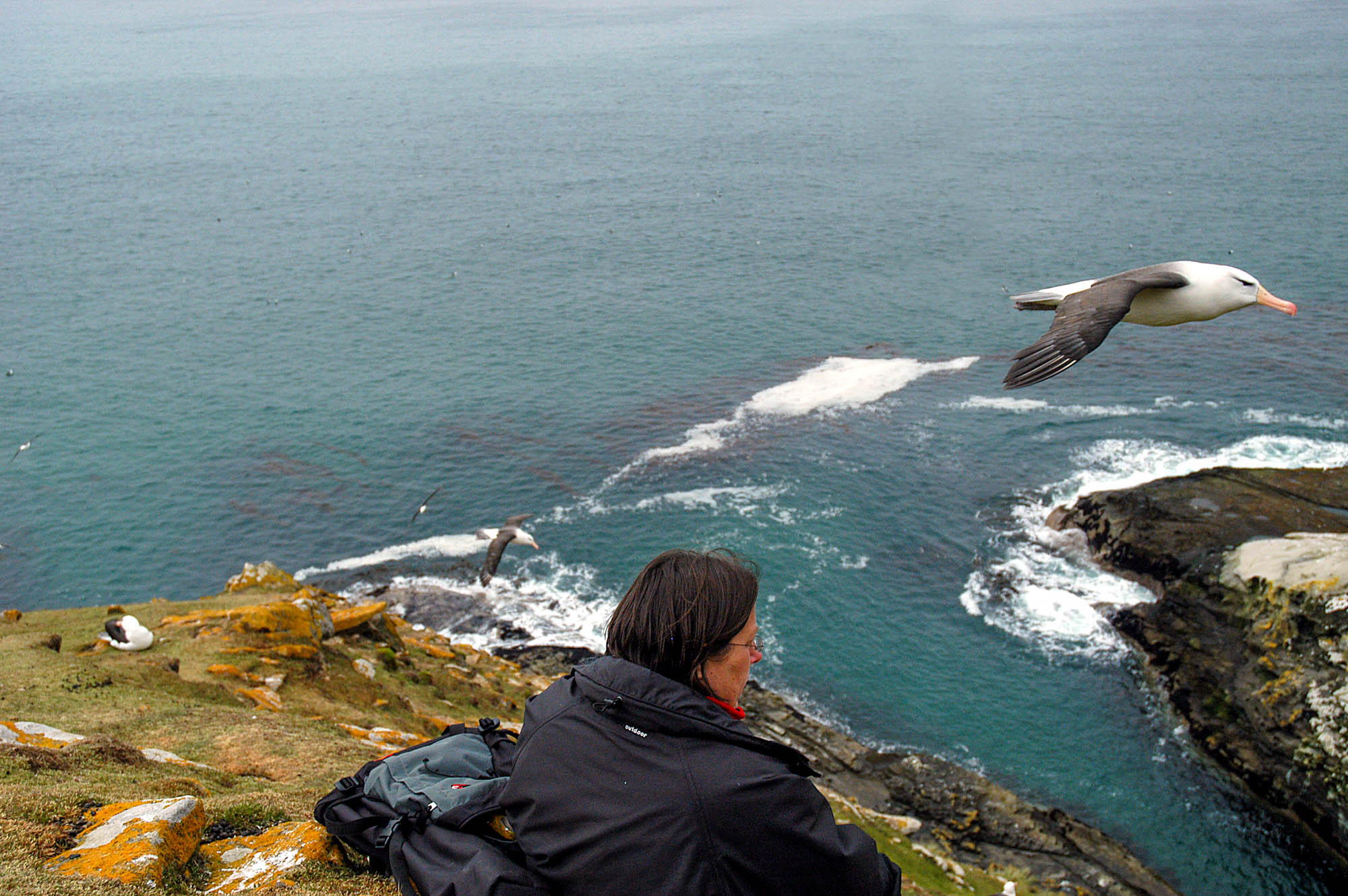 Bei einer Albatroskolonie auf den Steilfelsen zu sitzen, während die prächtigen Tiere fast neugierig beim Vorbeiflug auf Augenhöhe erschienen, ist mehr als beeindruckend. Der Blick in die tiefschwarzen Augen dieser herrlichen Tiere bleibt ein unvergessliches Erlebnis.
