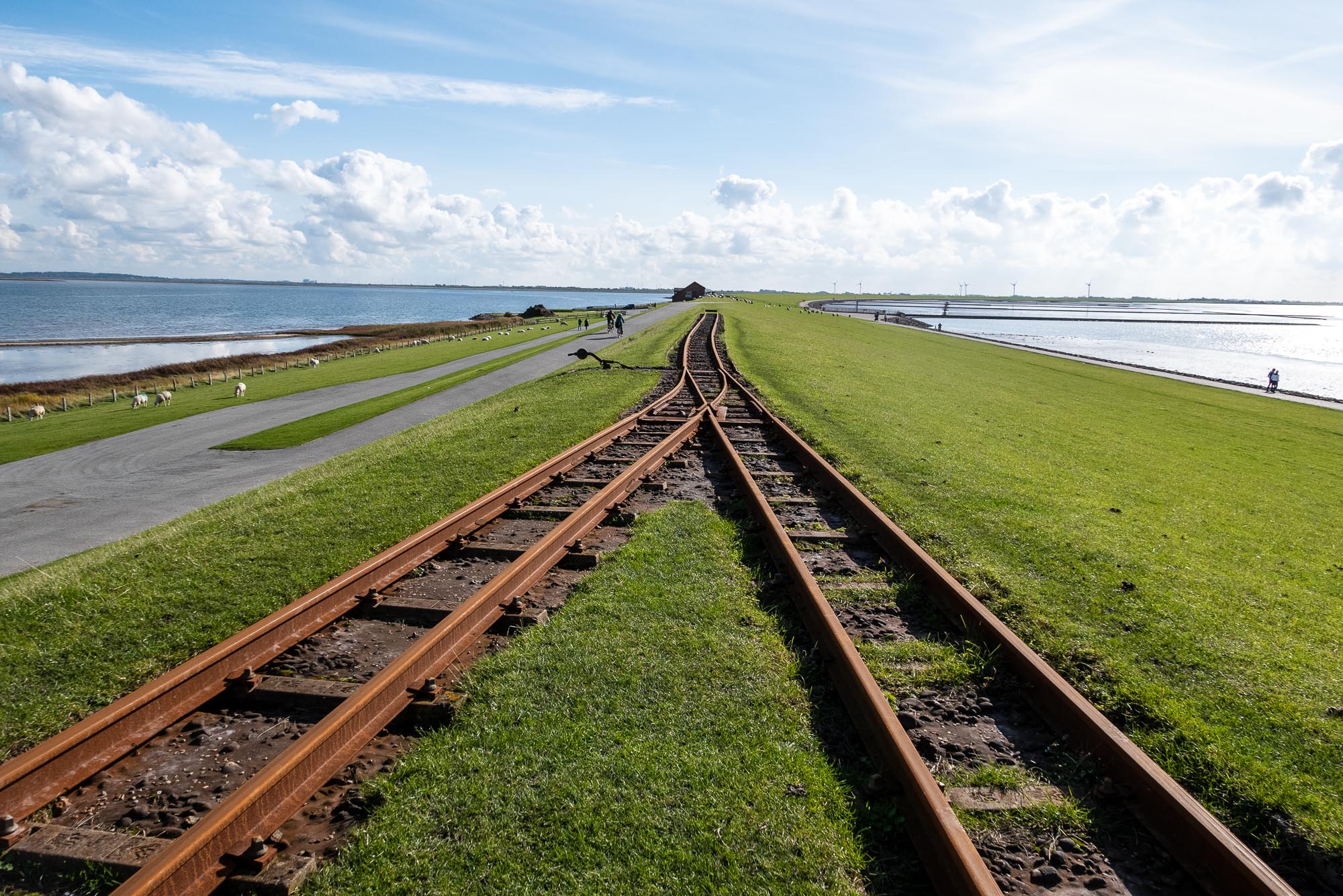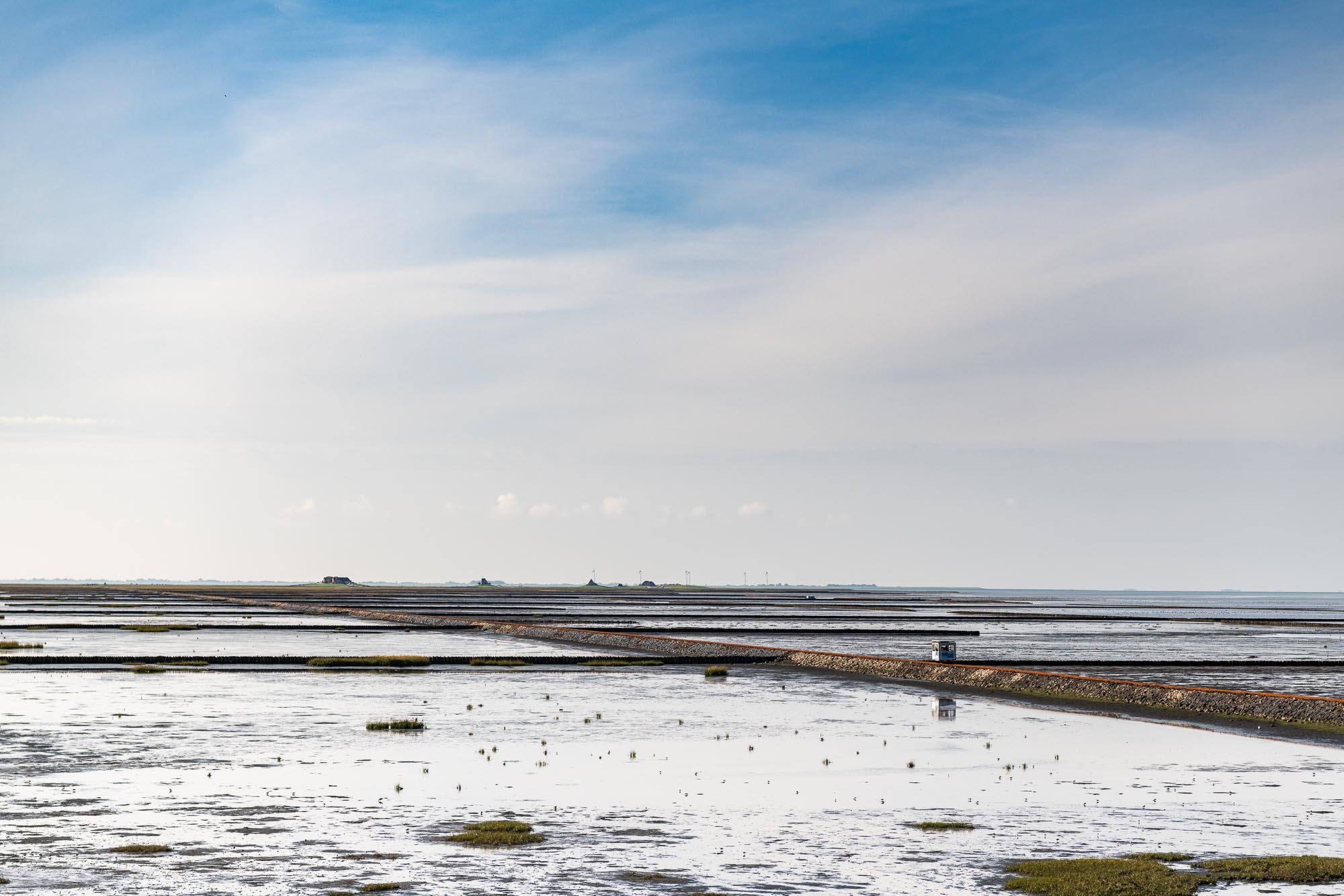 Die Hamburger Hallig kann man dagegen direkt zu Fuß, Fahrrad oder sogar mit dem Kfz vom Sönke-Nissen-Koog aus erreichen. Fahrräder kann man am Deich mieten oder ein Ticket für die Fahrt per Kfz kaufen. Die Gasttätte auf der Hallig ist ein beliebtes Ausflugziel und entlang der Uferbefestigungen kann man interessante Vögel beobachten - wir haben hier sogar Eiderenten gesehen.