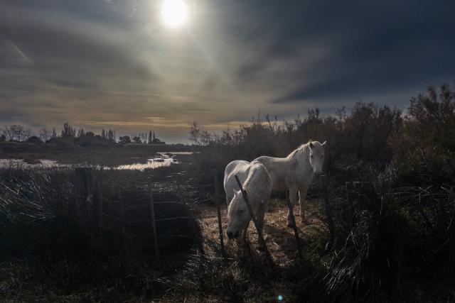 Im Frühnebel des Morgengrauens wirken sie besonders imposant, die Wildpferde der Camargue. Im Galopp tauchen sie unvermittelt aus dem Frühnebel auf, kraftvoll und unbändig. Von den Einheimischen werden sie die "Weißen Pferde aus dem Meer" genannt, da man sie mit geschlossenen Nüstern beim Weiden unter Wasser beobachten kann. Ähnlich wie bei Elchen wird so verhindert, dass Wasser in ihre Lungen eindringen kann.
