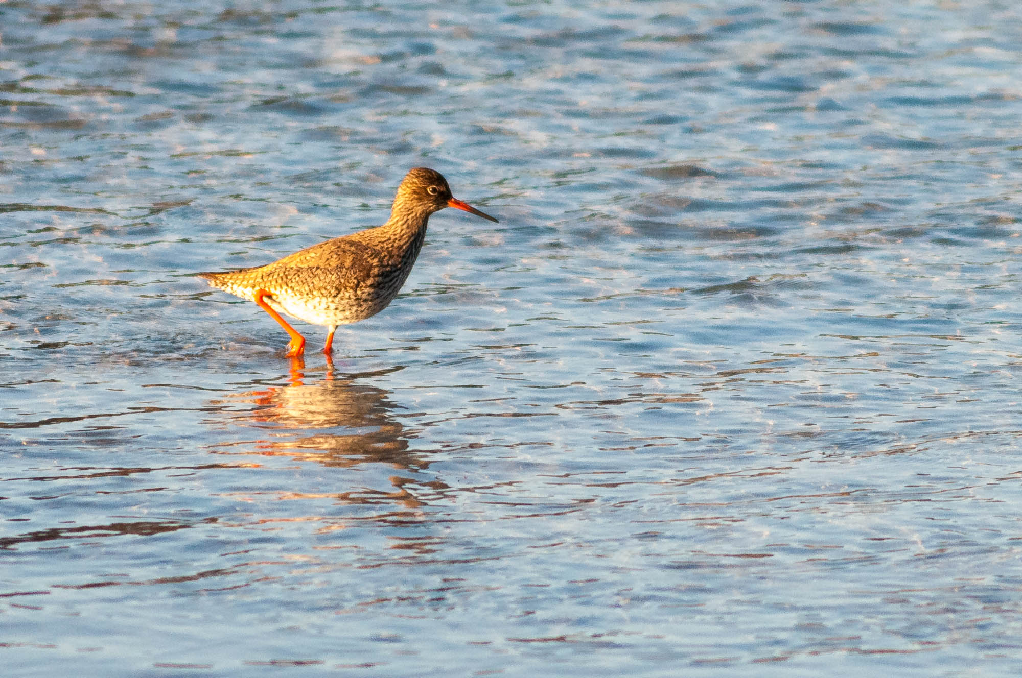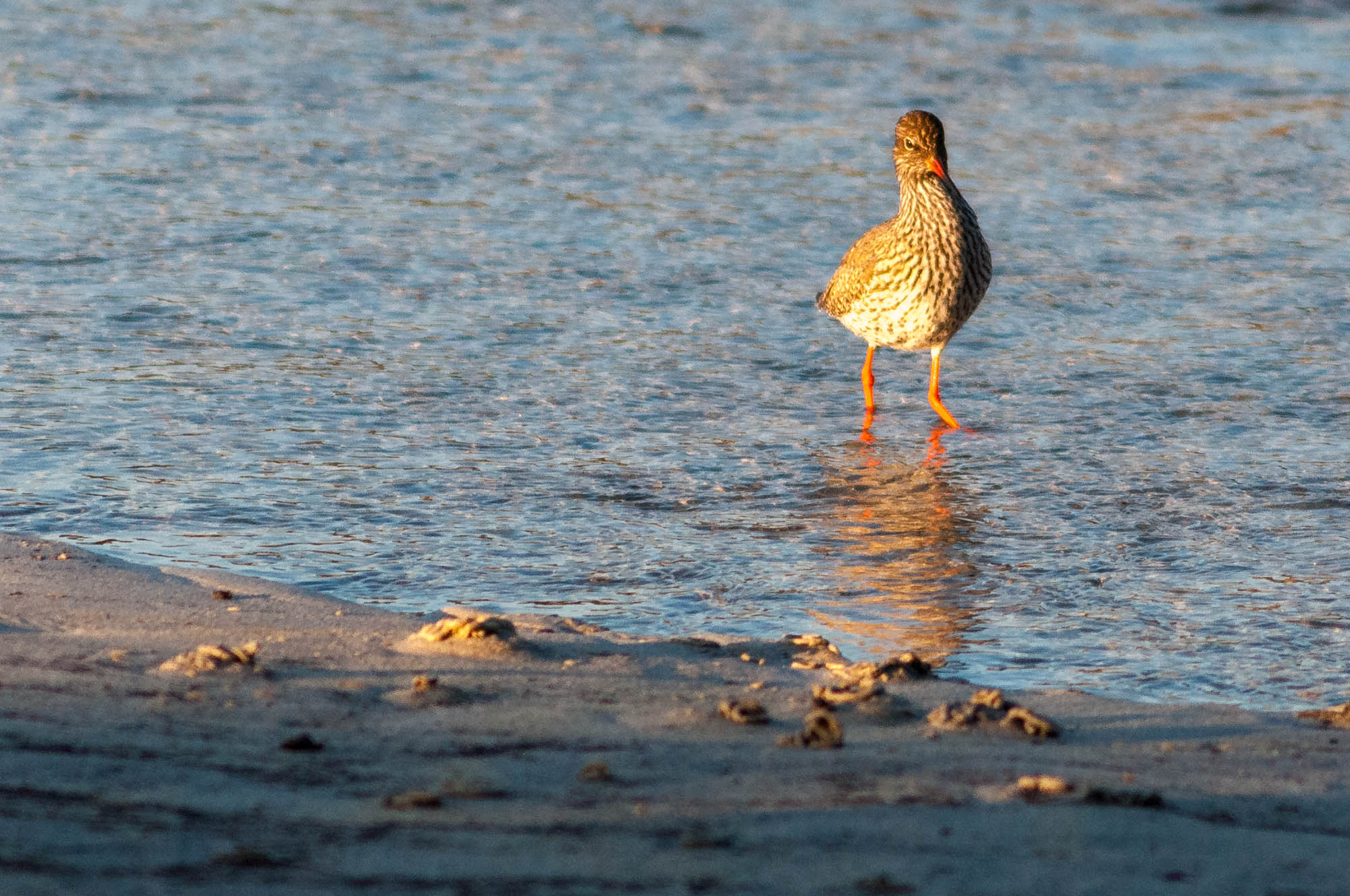 Der Rotschenkel zählt zu den Schnepfenvögeln (Scolopacidae) in der Ordnung Regenpfeiferartige (Charadriiformes) und lebt in fast ganz Eurasien an Küsten und Gewässern. Mit rund 30 cm Größe ist er ausgewachsen etwas kleiner als sein Verwandter, der Grünschenkel. In Deutschland kann man ihn gut am Wattenmeer beobachten. Hier zeigt er sich auch gerne in größeren Ansammlungen. Wir haben ihn direkt vom Haus aus auf den Lofoten fotografieren können, wo wir unser 500 mm f/4,0 Nikkor bequem auf der Veranda aufbauen konnten. Von hier ließ sich das fröhliche Treiben der Vögel gut beobachten und ablichten.