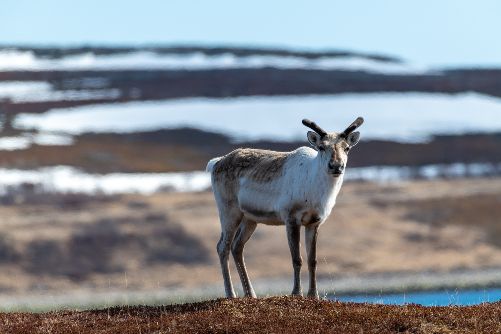 Auf der kleinen Insel waren wir auf der Suche nach Odinshühnchen (Phalaropus lobatus). Leider hatten wir keinen Erfolg und mussten uns mit Aufnahmen von Rentieren und Gänsesägern begnügen.