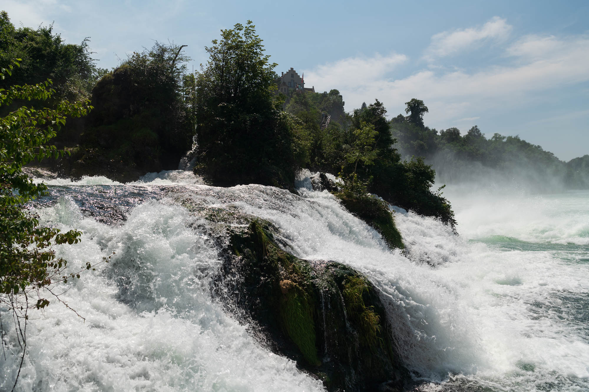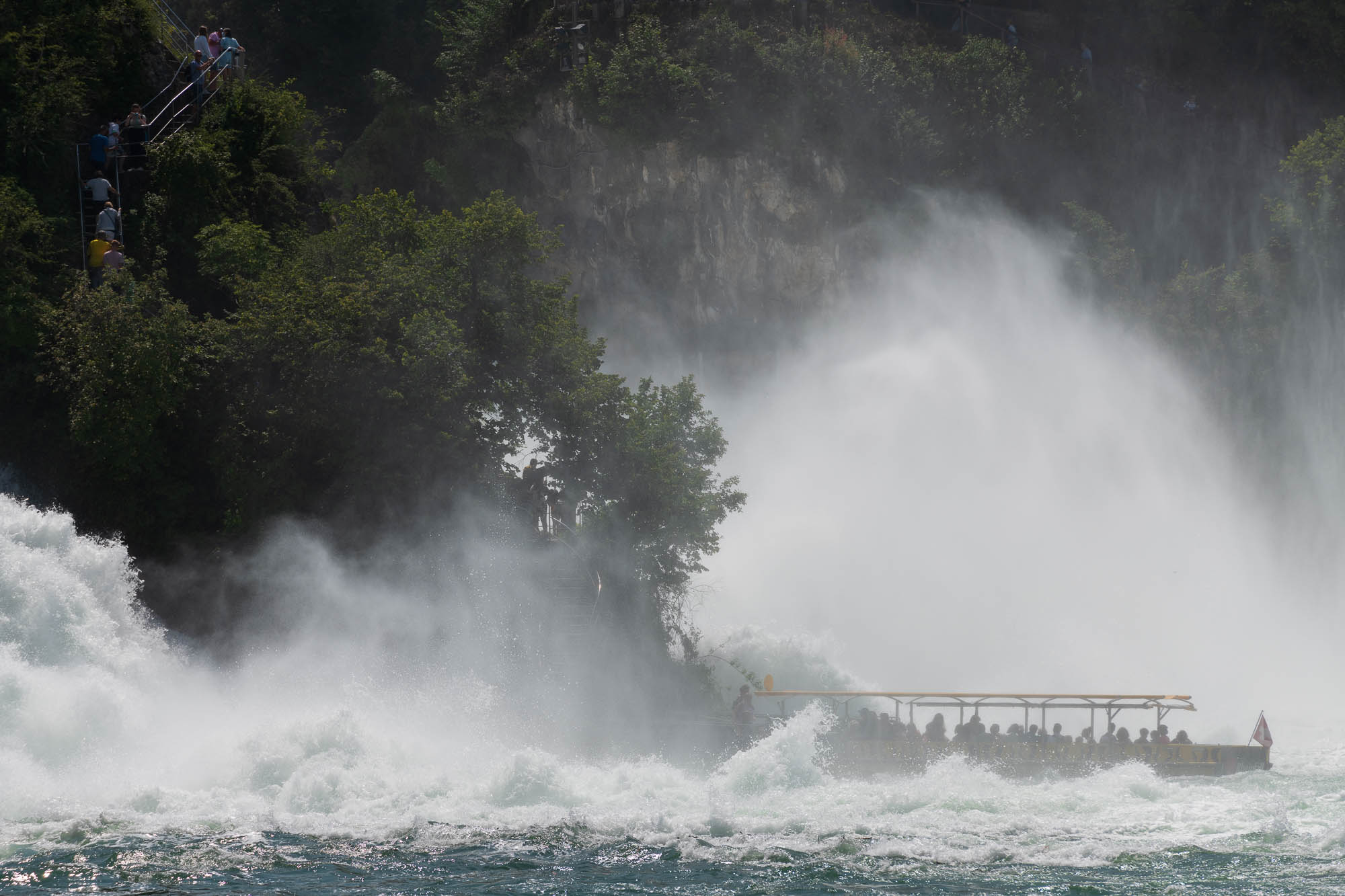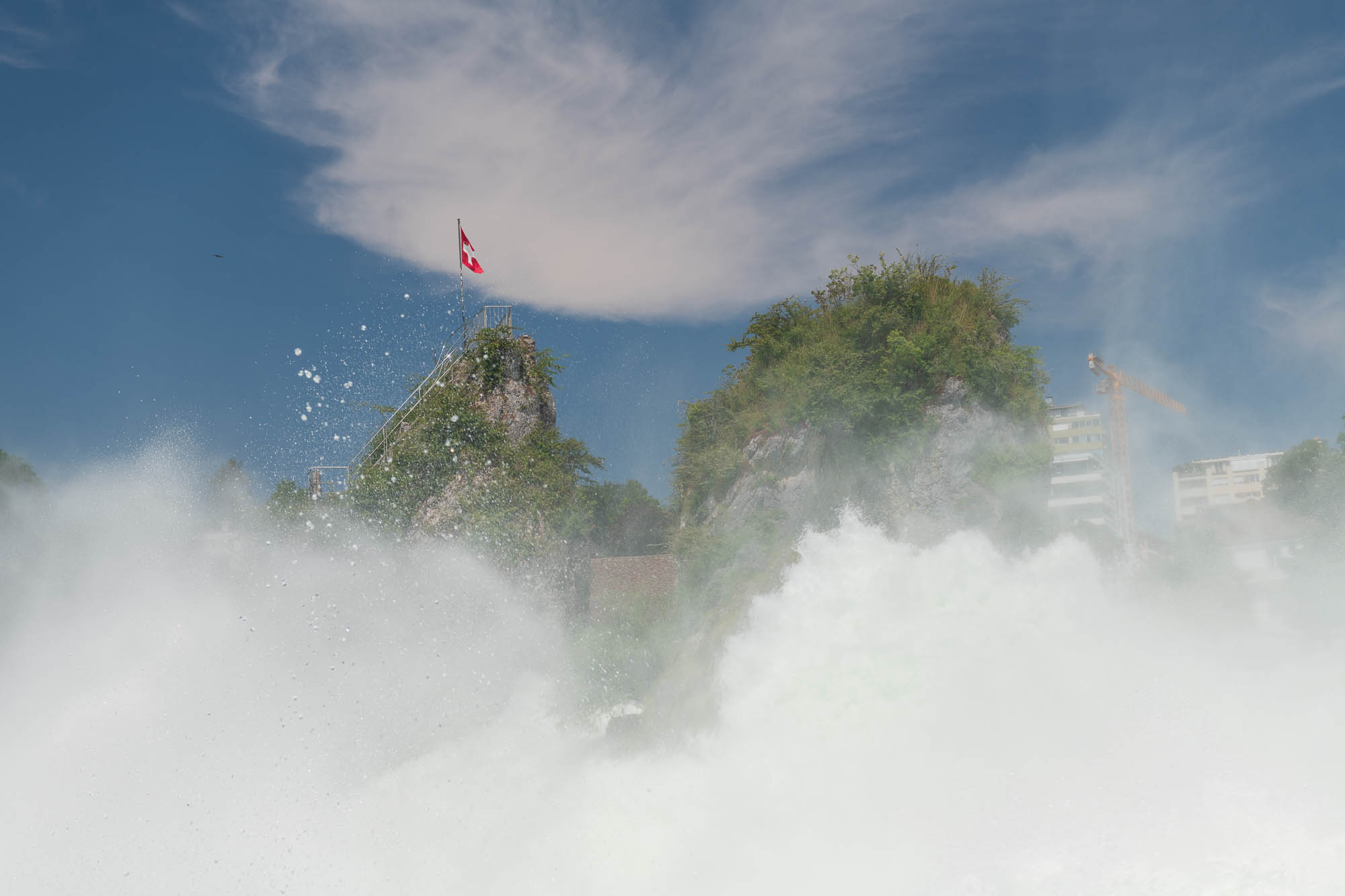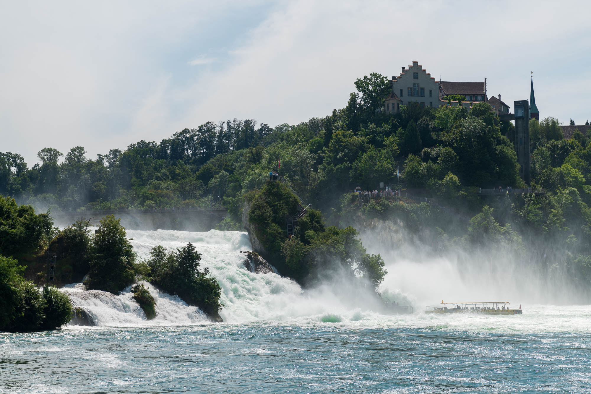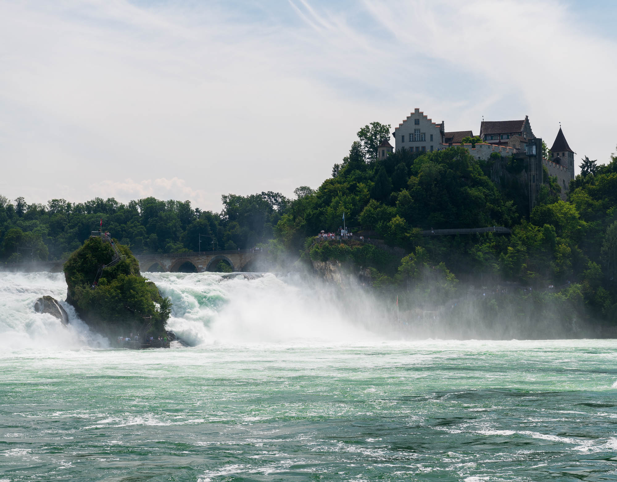 Der Rheinfall bei Schaffhausen ist ein touristisches Highlight in der Schweiz aber vor allem sehr sehenswert. Er gehört zu den drei größten Wasserfällen in Europa. Bei hohen Wasserständen sprüht die Gischt des herabstürzenden Wassers viele Meter hoch und das Getöse der Rheinfluten verlangt nach gehörigem Respekt.