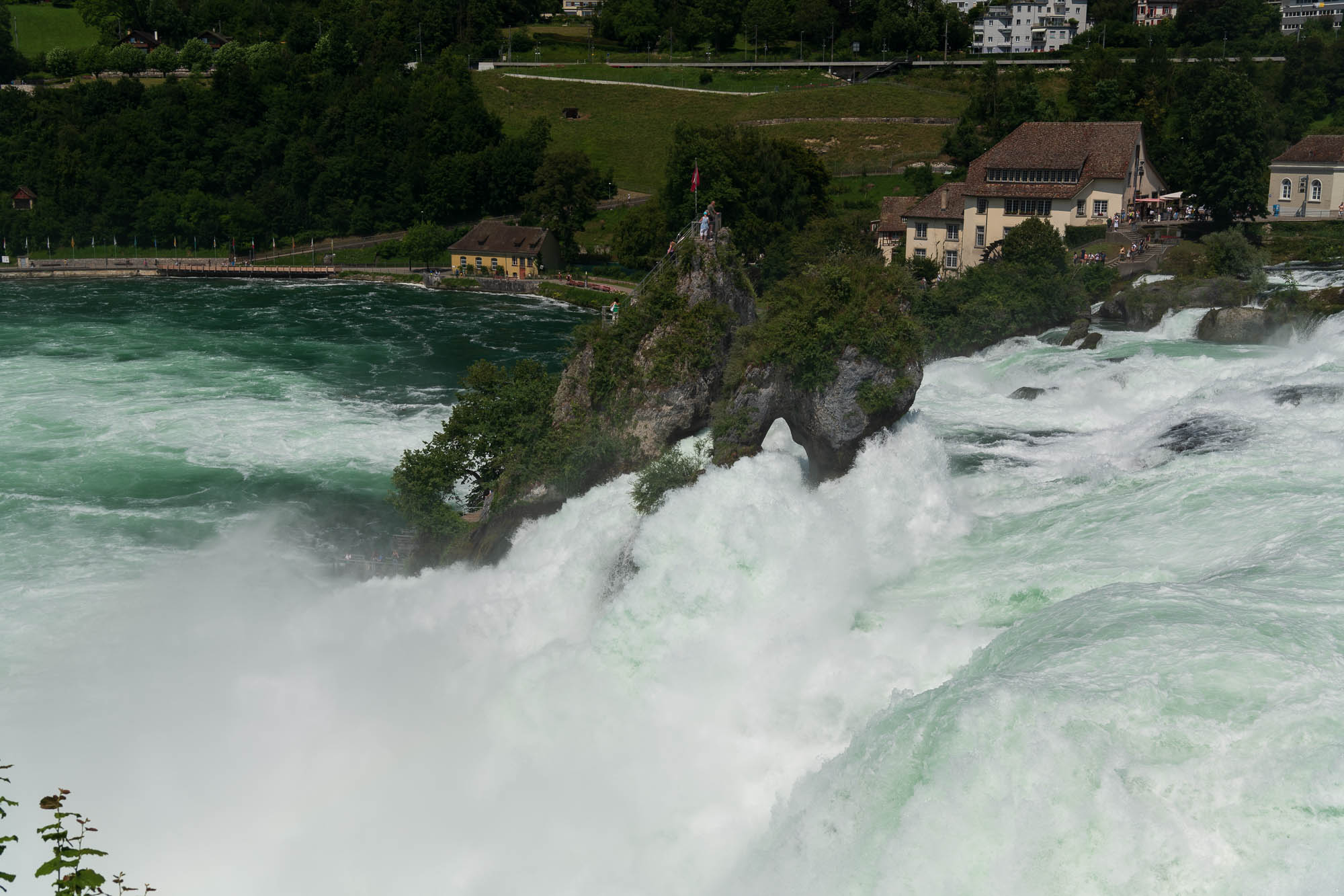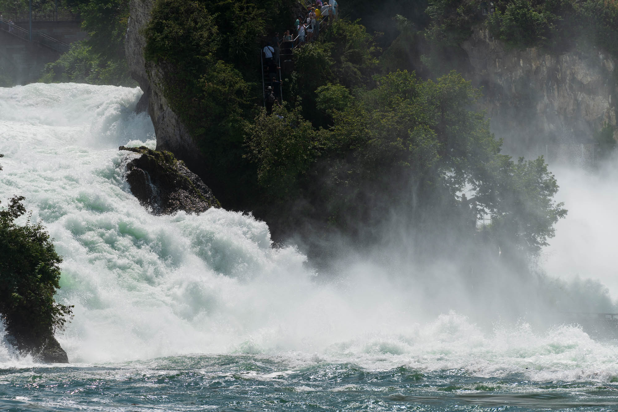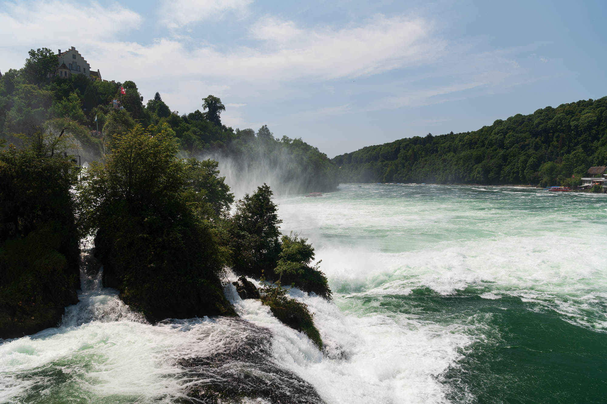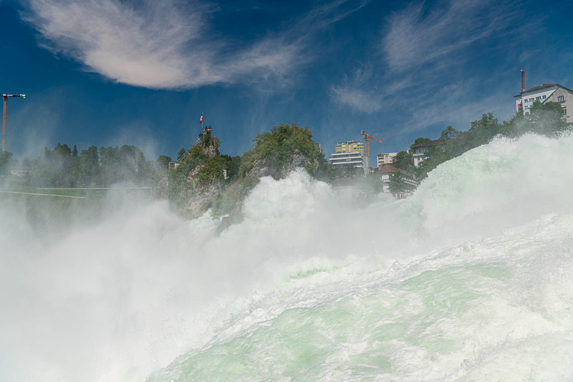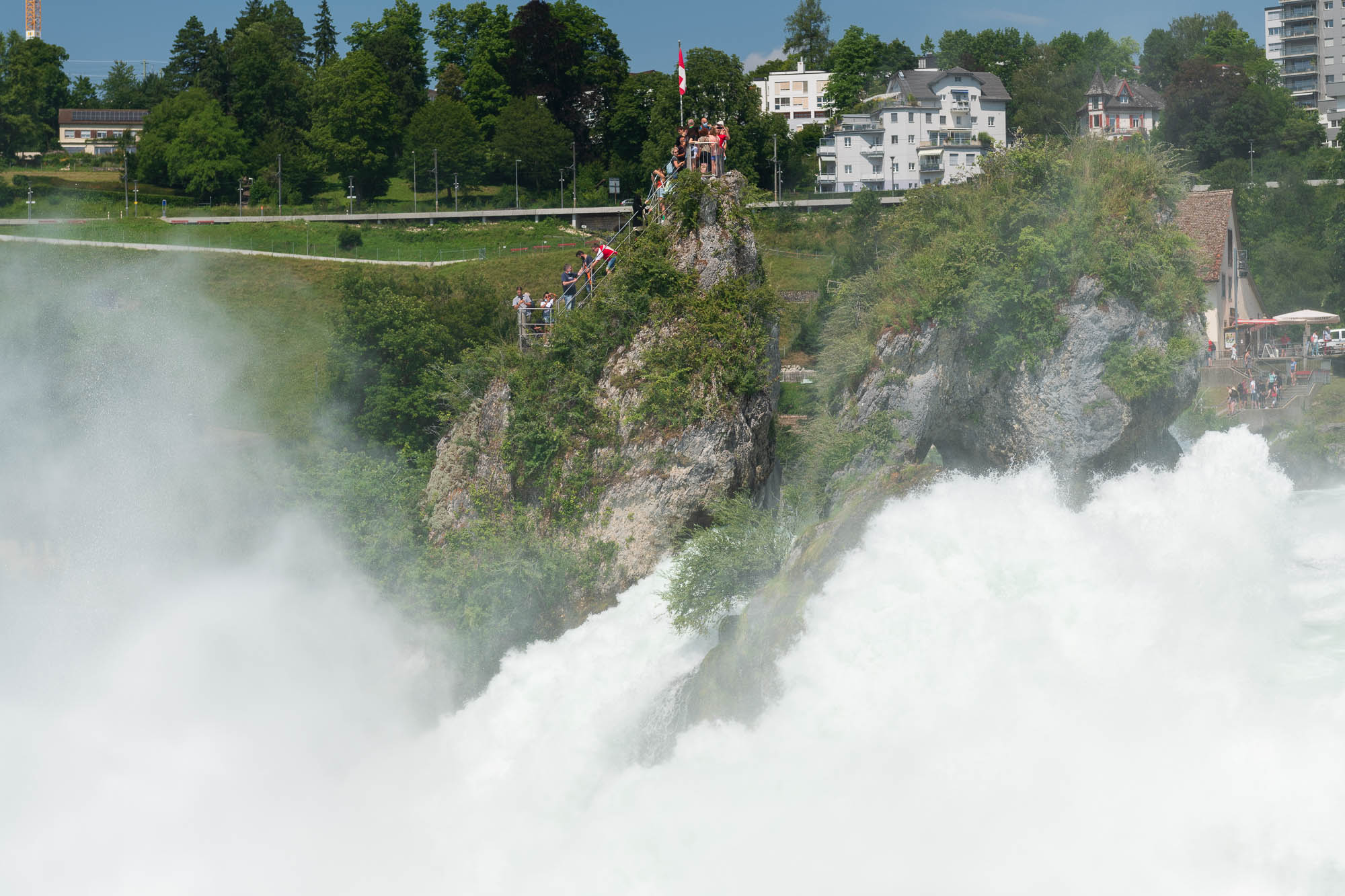 Der Rheinfall bei Schaffhausen ist ein touristisches Highlight in der Schweiz aber vor allem sehr sehenswert. Er gehört zu den drei größten Wasserfällen in Europa. Bei hohen Wasserständen sprüht die Gischt des herabstürzenden Wassers viele Meter hoch und das Getöse der Rheinfluten verlangt nach gehörigem Respekt.
