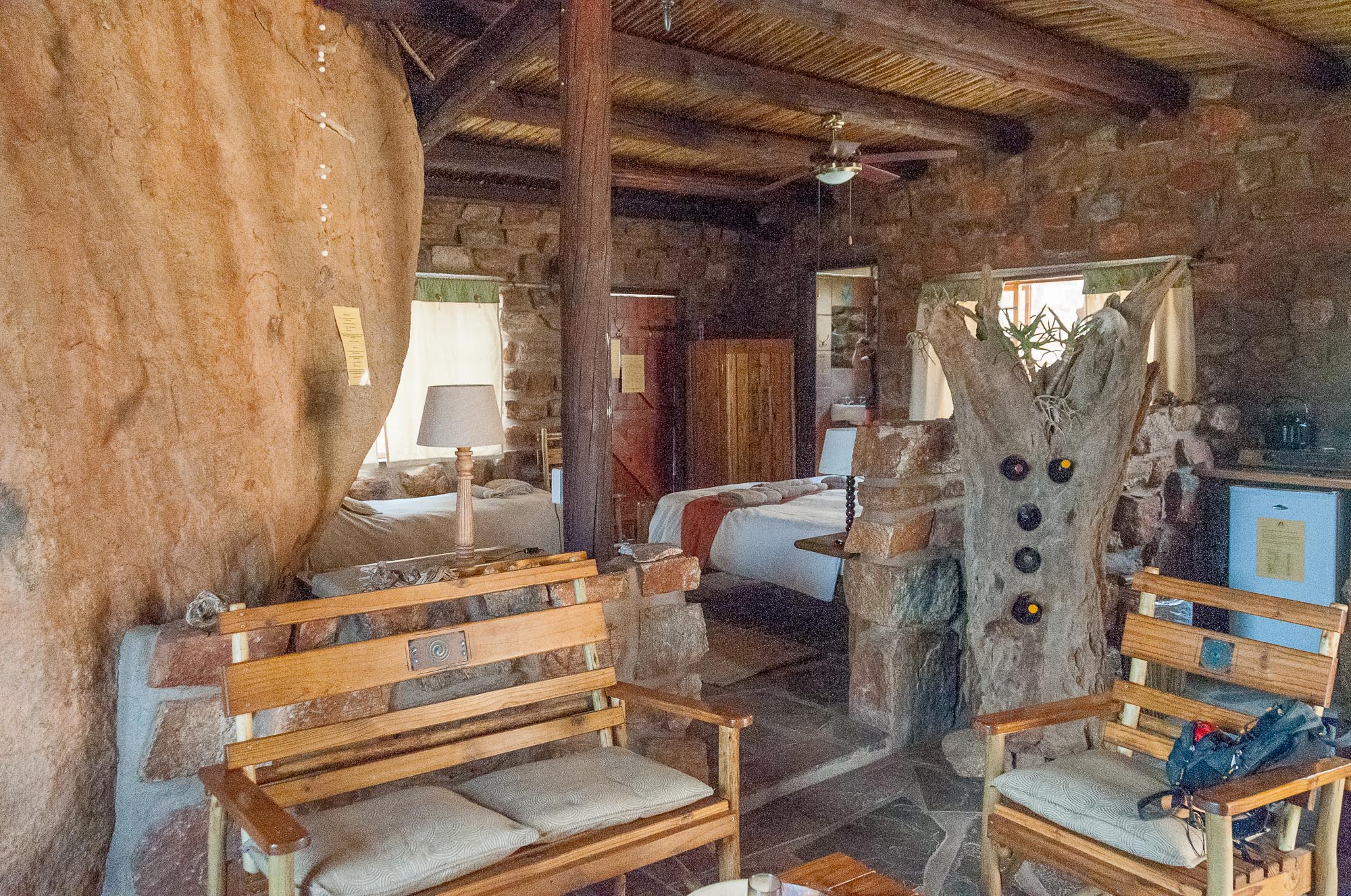 Heute habe ich einmal in das Reisetagebuch von Namibia geschaut und bin auf den Eintrag über das Klein–Aus–Vista–Eagels Nest Chalets gestoßen. Da wurden gute Erinnerungen wach z.B. von einer der schönsten Unterkünfte, die wir je hatten. Gebucht hatten wir diese Reise über das Reisebüro Umfulana. Schon in den Reiseunterlagen wurde die Unterkunft sehr schön wie folgt beschrieben: "Wo das Huib Plateau aus der Wüste Namib hoch aufragt, befindet sich einsam und allein die Lodge, deren wenige Steinhäuser wie Adlernester in den Granitfelsen gebaut sind". Unsere sehr hohen Erwartungen wurden voll übertroffen.