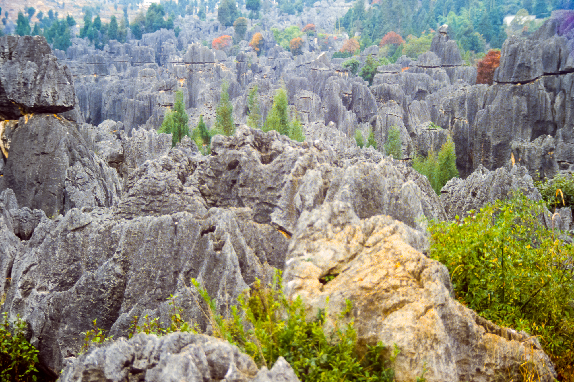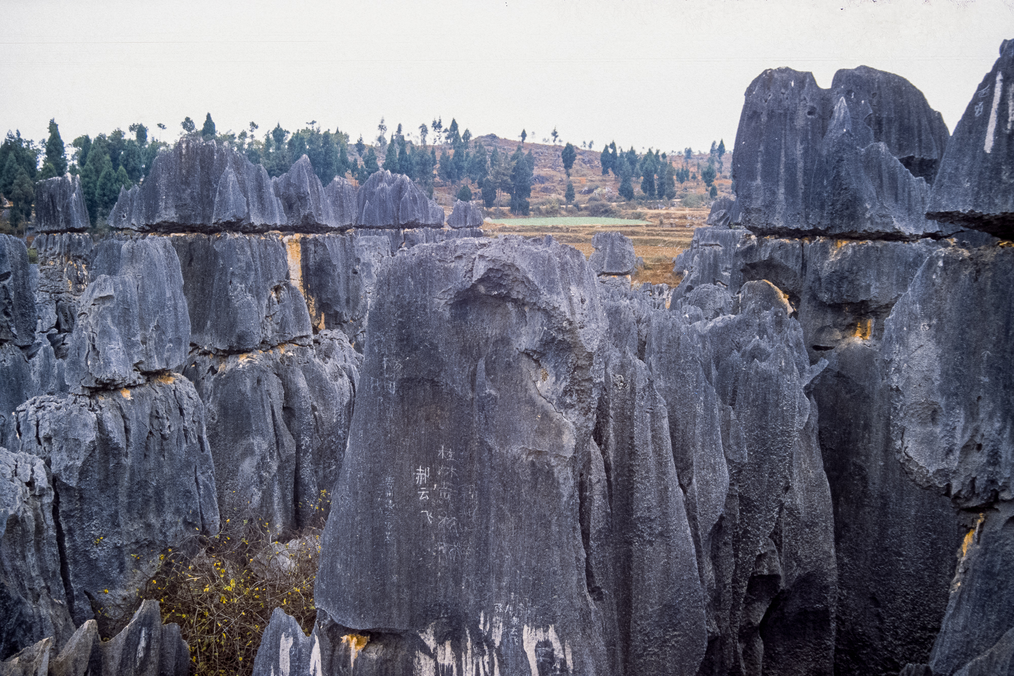 Shílín (石林), zu deutsch „Steinwald“, ist eine eindrucksvolle Karstlandschaft, die in der chinesischen Provinz Yunnan liegt. Die Landschaft befindet sich etwa 120 km südöstlich von Kunming, wo wir für einige Tage Quartier bezogen hatten. Seit 2007 gehört Shilin unter dem Überbegriff „Karstlandschaften in Südchina“ zum Welterbe der UNESCO. Einige Teile des märchenhaften Steinwaldes sind für Touristen zugänglich und bieten abgesehen von der wundervollen Landschaft auch einige Touristenattraktionen wie Ausflüge mit Kamel, Dromedar und Zebra.