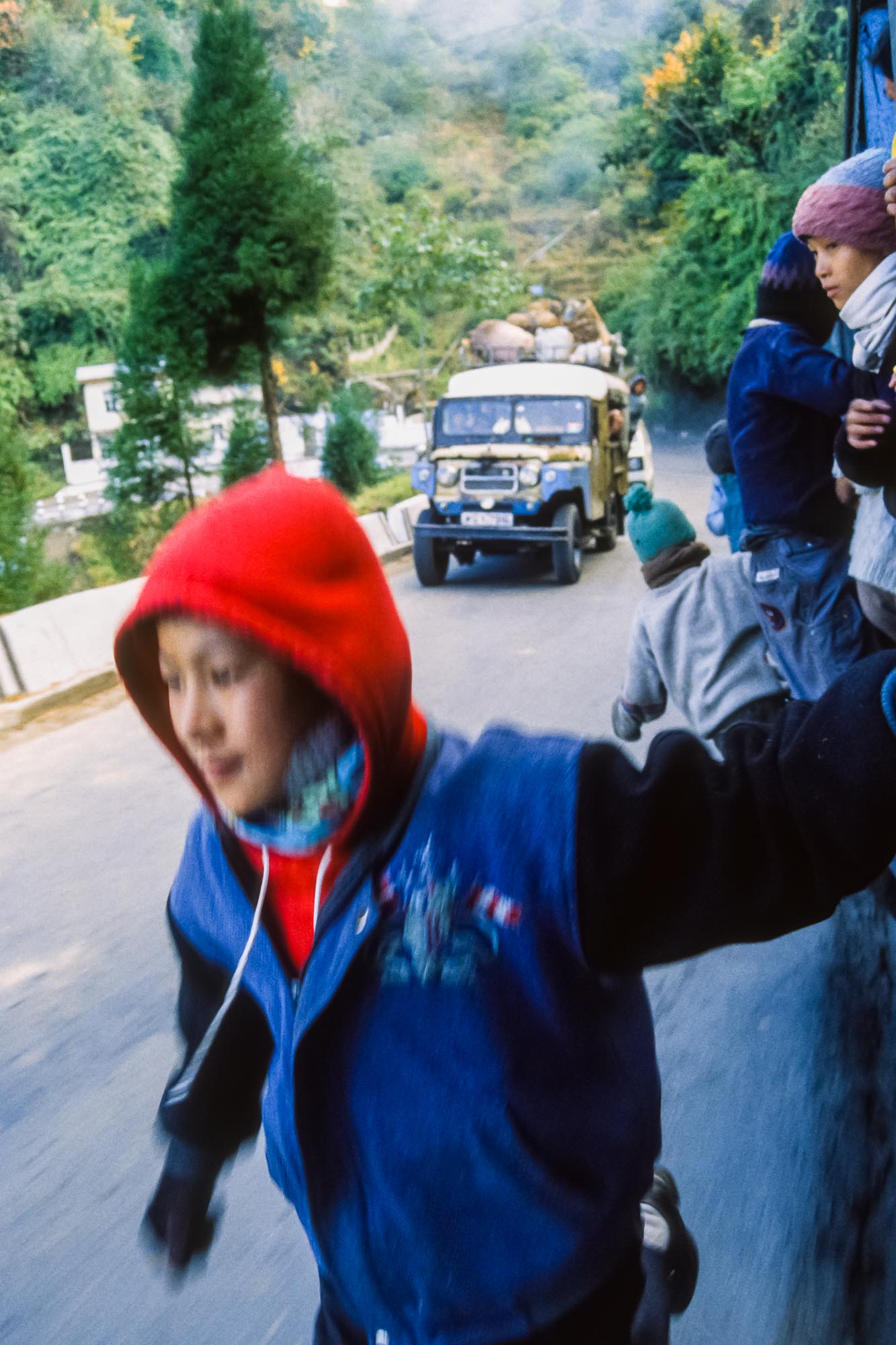 Mit der Eisenbahn in Indien zu fahren ist ein Erlebnis. Die gut gefüllten Züge erklimmen mit moderater Geschwindigkeit die Höhenlagen im Vorgebirge des Himalayamassivs und in den Dörfern und und Orten nutzen die Kinder die passierenden Züge als willkommene Abwechslung im Alltag. Sie springen auf und halten sich an den Türen und Fenstern fest um wieder abzuspringen, wenn die Züge die bewohnten Gegenden weit hinter sich lassen - nicht ganz ungefährlich aber die Freude der Kinder war sehr groß.