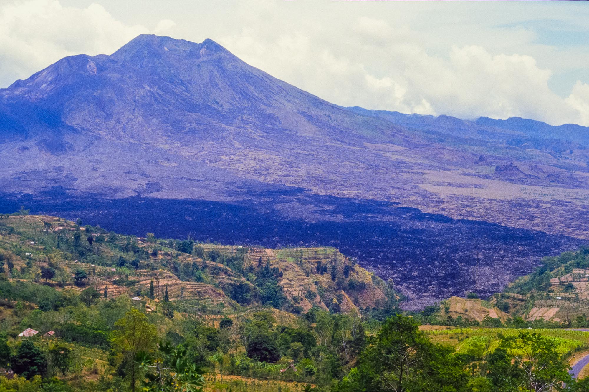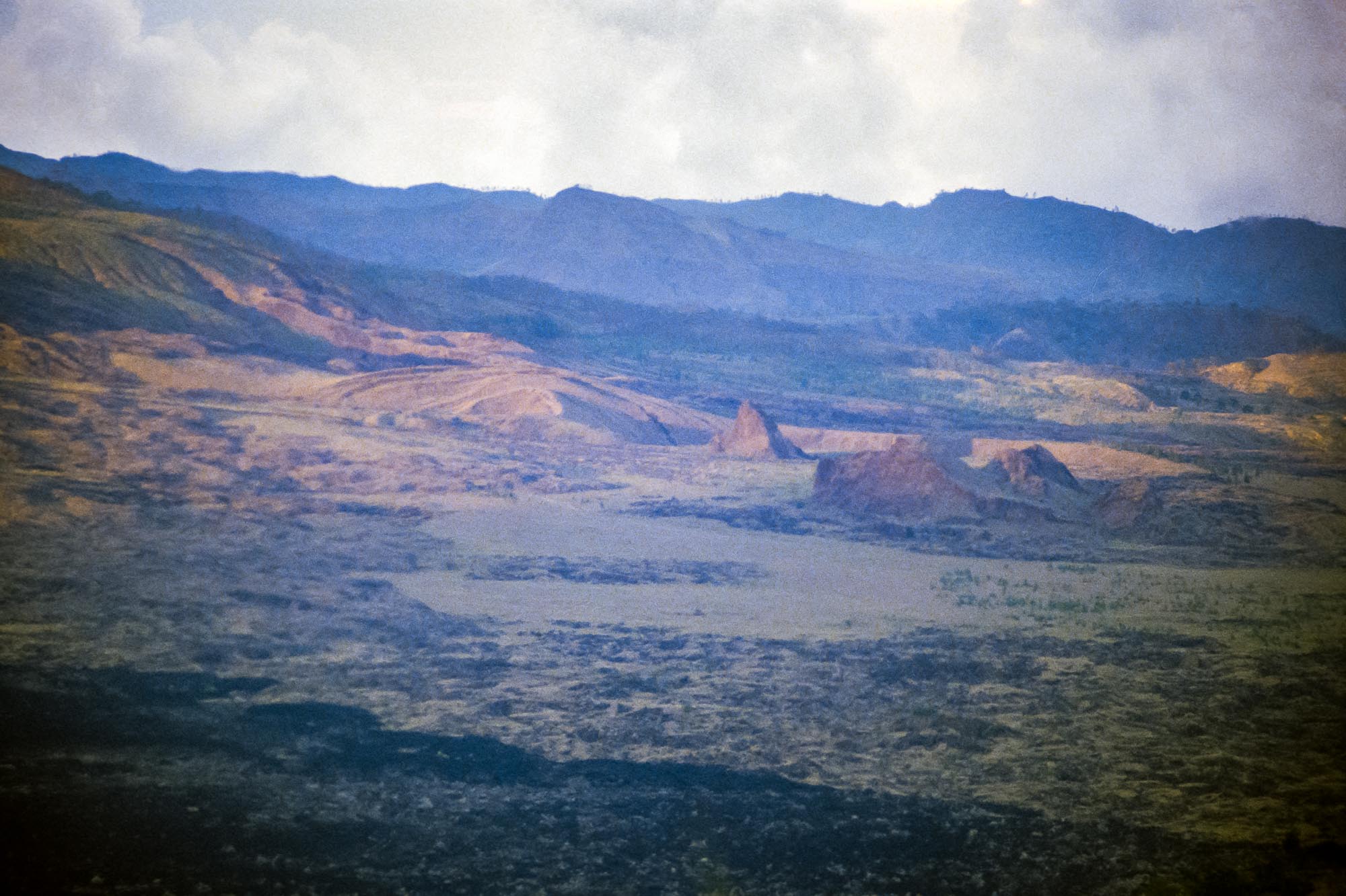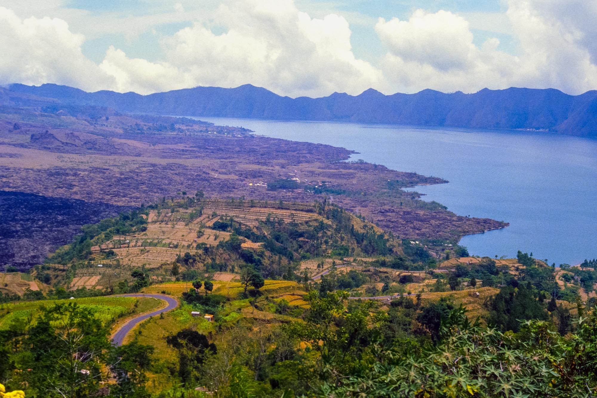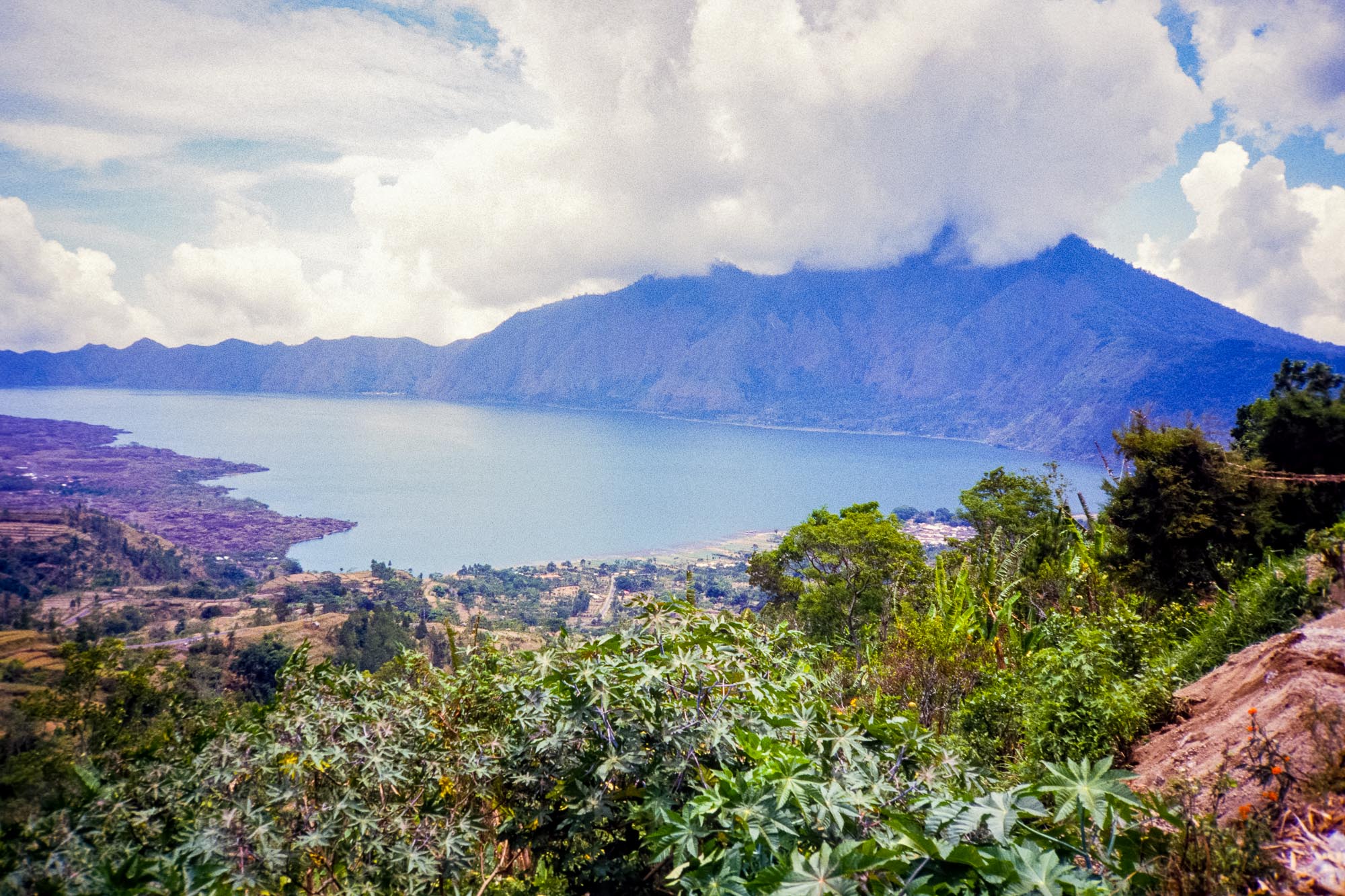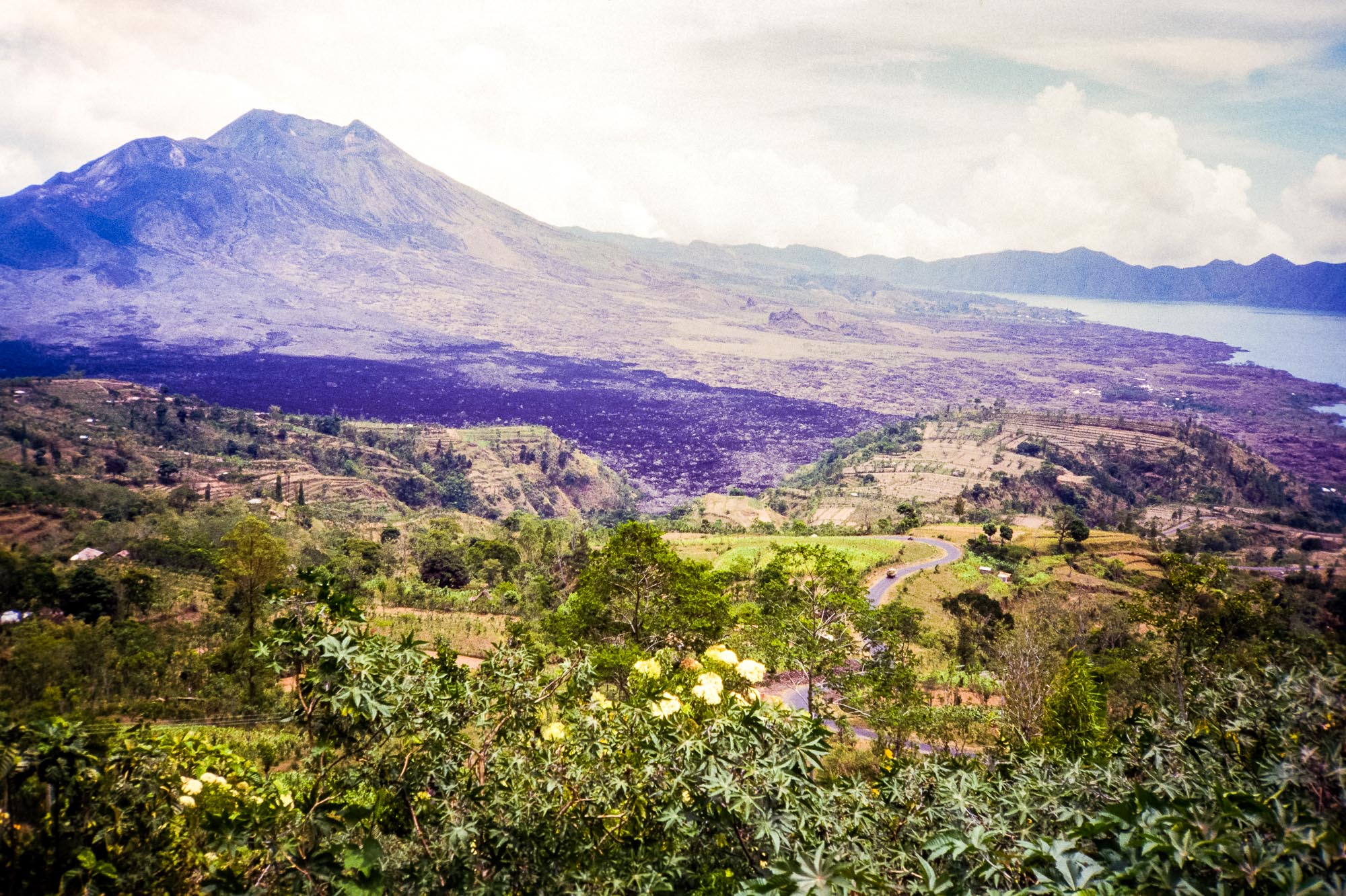 Während der folgenden Wochen umrundeten wir die Insel und bezogen auch für eine Nacht Quartier in dem Ort Penelokan, der auf der äußeren Caldera des 1717 Meter hohen Gunung Batur liegt. Dies ist ein aktiver Schichtvulkan im Zentrum zweier konzentrischer Calderen. In der größeren Caldera liegt im Südosten ein Kratersee mit Namen Danau Batur, der von dem 2159 Meter hohen Gunung Abang überragt wird. Hat man den Gunung Batur erklommen, kann man in weiter Ferne auch den höchsten Berg Balis sehen, den Gunung Agung, den wir während unseres damaligen Aufenthaltes leider nicht besteigen durften - der aktive Schichtvulkan war gerade doch etwas zu unruhig geworden.