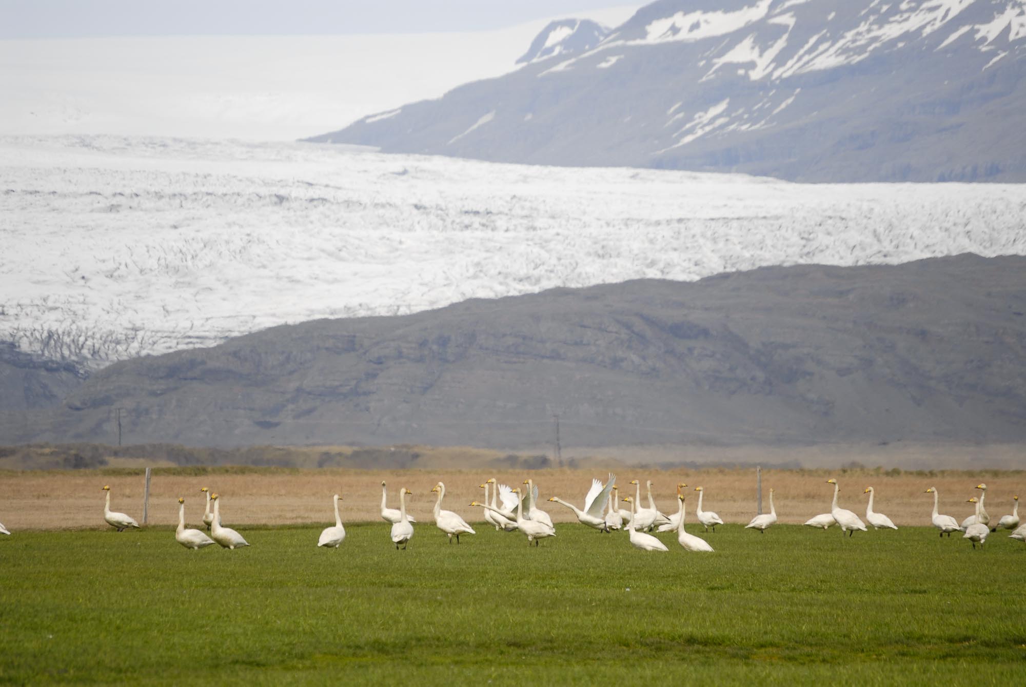 Singschwäne haben wir vor allem auf Island und Hokkaido in Japan fotografieren können. Von den bekannten Höckerschwänen unterscheidet er sich vor allem durch die Schnabelpartie. Seine Rufe erinnern an Posaunen und können durchaus melodisch wirken. Auf dem Kussharo-See auf Hokkaido in Japan konnten wir viele Schwäne in einer großen Gruppe sehen. Und die fliegenden Singschwäne vor den Gletschern von Island im Hintergrund bleiben unvergesslich.