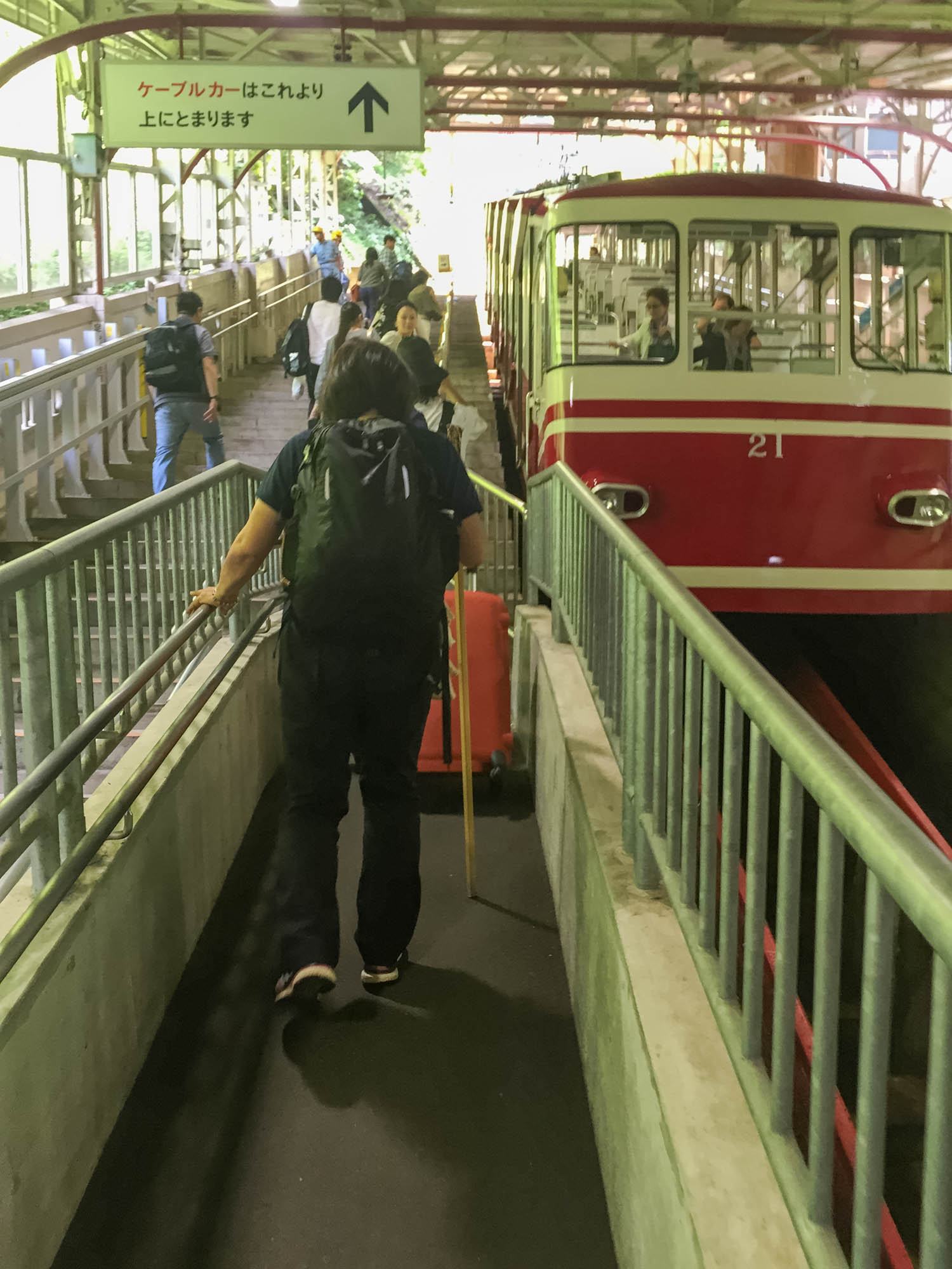 und schließlich mit der Zahnradbahn hinauf nach Kōyasan – und von dort mit dem Bus zum Ekōin-Tempel.