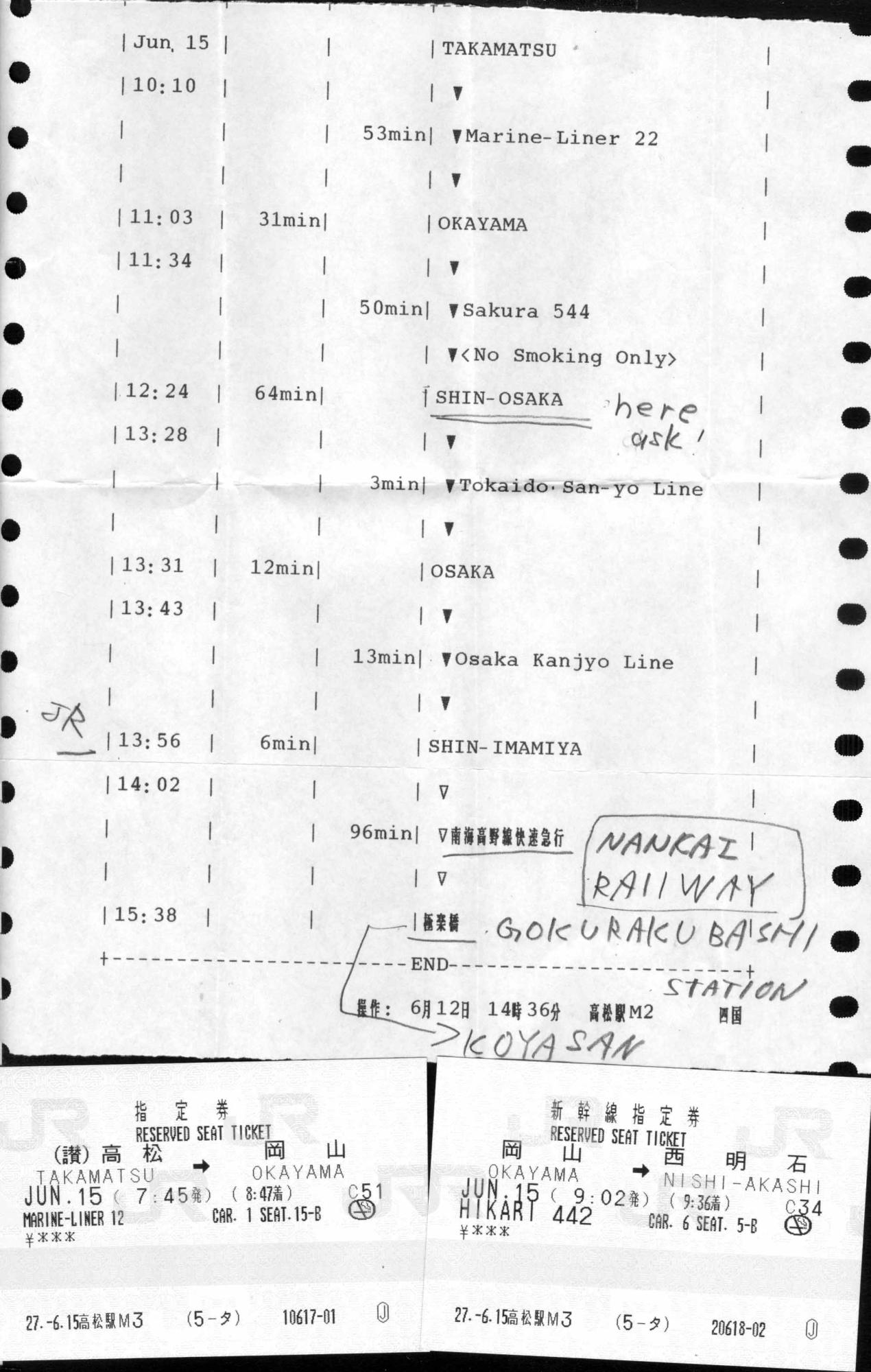 11:03 mit dem Sakura 544 nach Shin-Osaka, 13:28 weiter mit der Tokaido-Sanyō-Line nach Osaka,