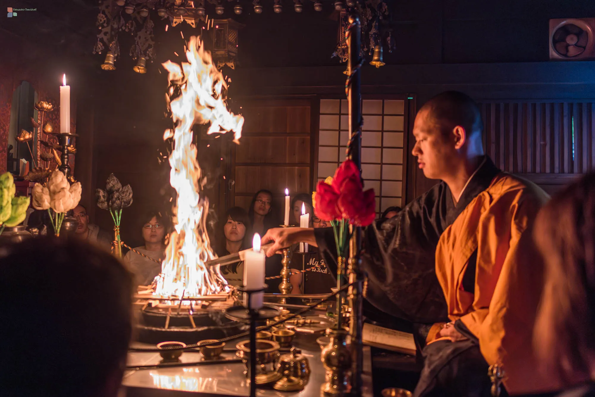 Wenn während der rituellen Flammen jemand im lodernden Feuer den Drachen (Ryū) erblickt, gilt das als Zeichen spiritueller Durchdringung – eine Art unmittelbare Offenbarung der Buddha-Weisheit in Form einer Vision.