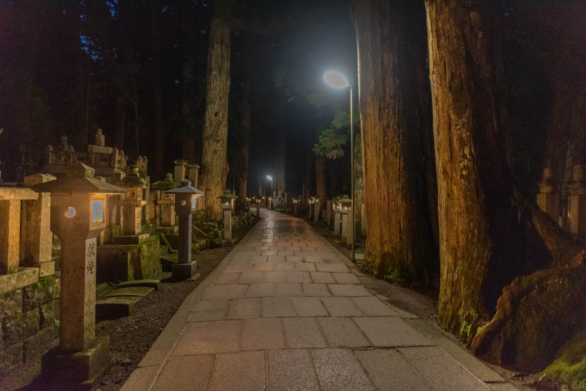 Am Abend unserer Ankunft in Kōyasan im Sommer 2015 führte uns der Mönch Nobo zum außergewöhnlichen Friedhof Okunoin, dem spirituellen Zentrum des Berges.