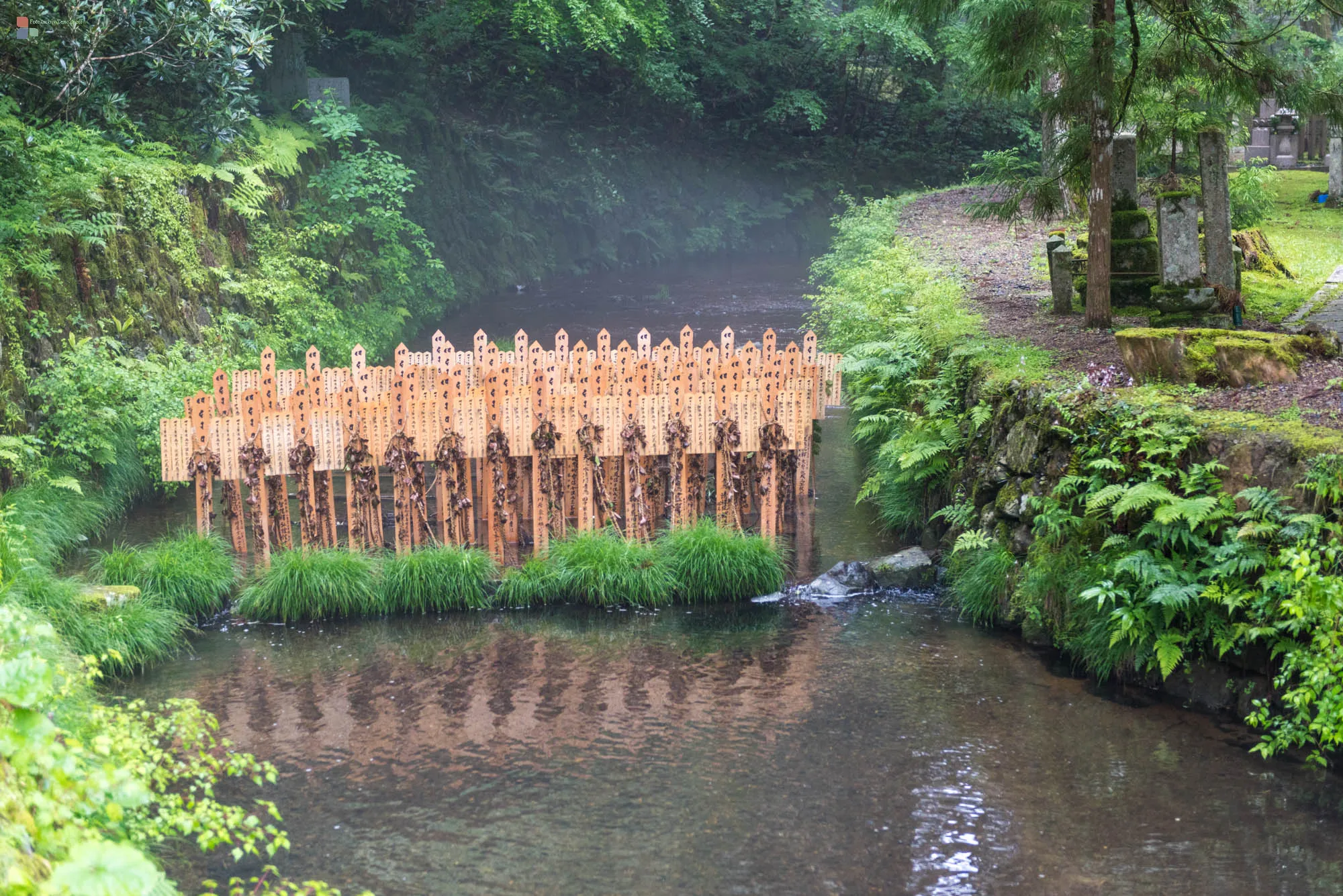 Dort stehen hunderte Holztafeln (itahō) im Wasser – Gedenkzeichen für ungeborene oder bei der Geburt verstorbene Kinder.