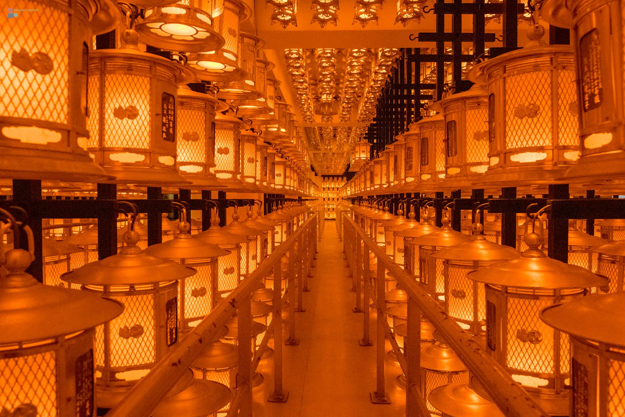 Ihr warmes, sanft flackerndes Licht füllt die Halle wie eine stille Welle – ein betörender Abschluss unseres Weges durch Okunoin, diesen einzigartigen Ort zwischen den Welten.