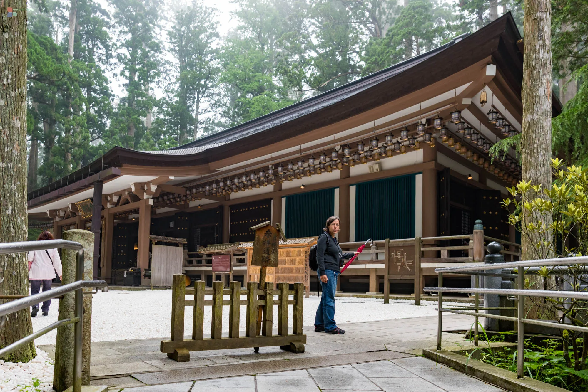Schließlich erreichen wir die Friedhofsgebäude, hinter denen sich der Eingang zum Mausoleum von Kōbō Daishi (Kūkai) befindet.