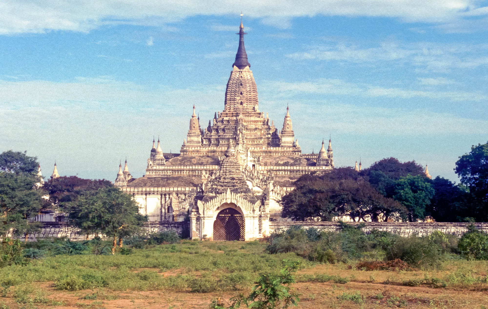 Mit dem Fahrrad durch die Ebene zu fahren bietet unvergleichliche Einblicke in das damalige wie heutige religiöse Leben der buddhistisch geprägten Kultur dieses Landes. Als wir diese Reise 1985 unternahmen, waren noch viele Gebäude in einem eher verlassenen Zustand und die Möglichkeiten zur Übernachtung in diesem Gebiet eingeschränkt. Heute dürfte sich dies geändert haben, denn die Ebene Bagan gilt mittlerweile als das touristische Highlight von Myanmar und viele der Tempel sind mit großen Aufwand restauriert worden - wo die Stupas bei unserer Reise lediglich aus Ziegelsteine bestanden, glänzt heute bereits der Goldbelag und läßt einige der bedeutenen Tempel äußerst prächtig erscheinen, was allerdings etwas unser damaliges Indiana Jones Feeling beeinträchtigen dürfte.Ein Vergleich ist interessant und bei den hier veröffentlichen Fotos zeigen wir Aufnahmen aus unserem Archiv der folgenden Sakralgebäude: