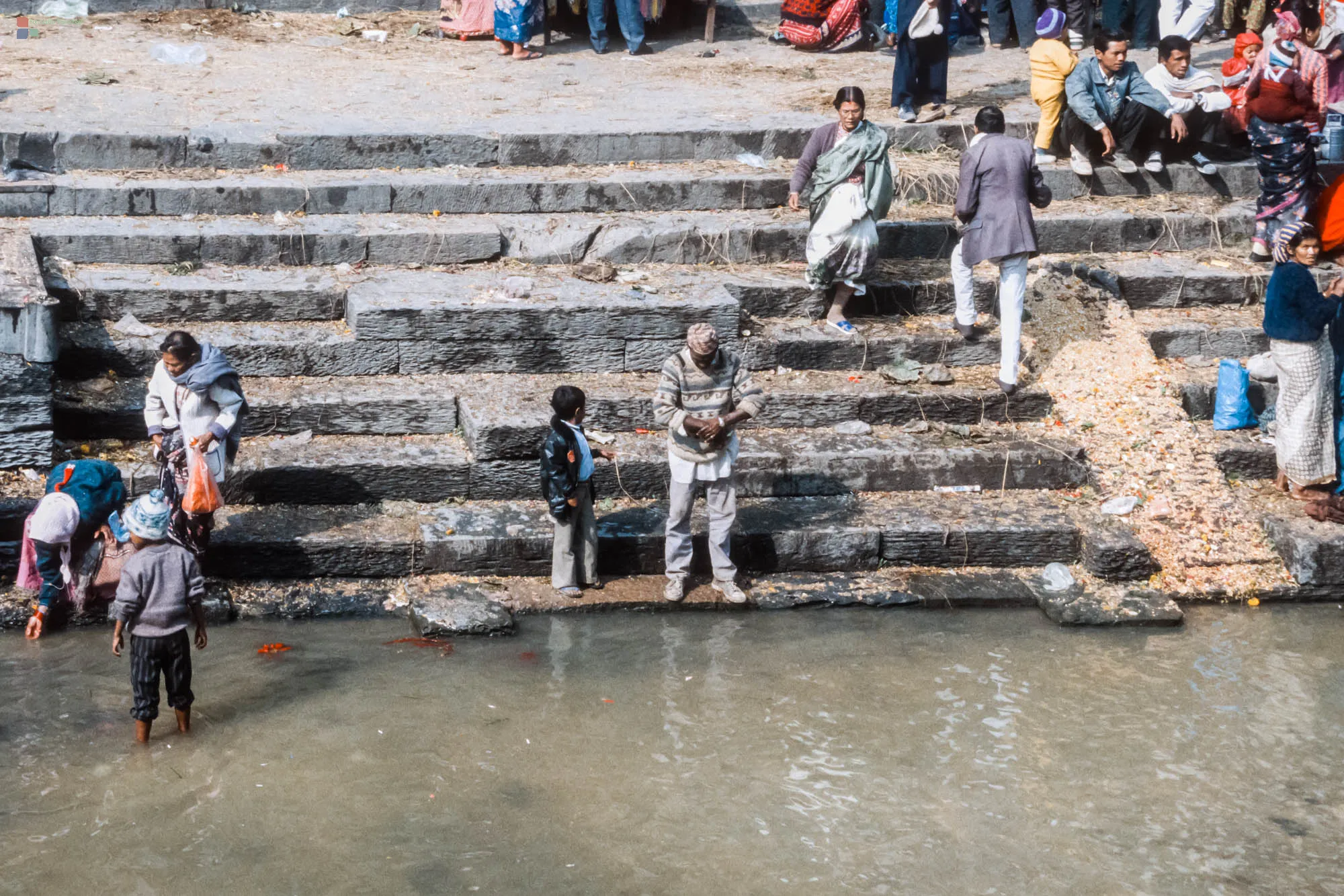 Pashupatinath ist nicht nur ein Ort des Gebets, sondern auch der Übergänge. Hier werden die Toten verbrannt, während Pilger nur wenige Meter entfernt Mantras rezitieren. Der Rauch der Scheiterhaufen zieht über den Fluss, während die Gläubigen Wasser schöpfen und Blumen ins Wasser legen – eine eindrückliche Choreografie von Leben, Tod und Wiederkehr.