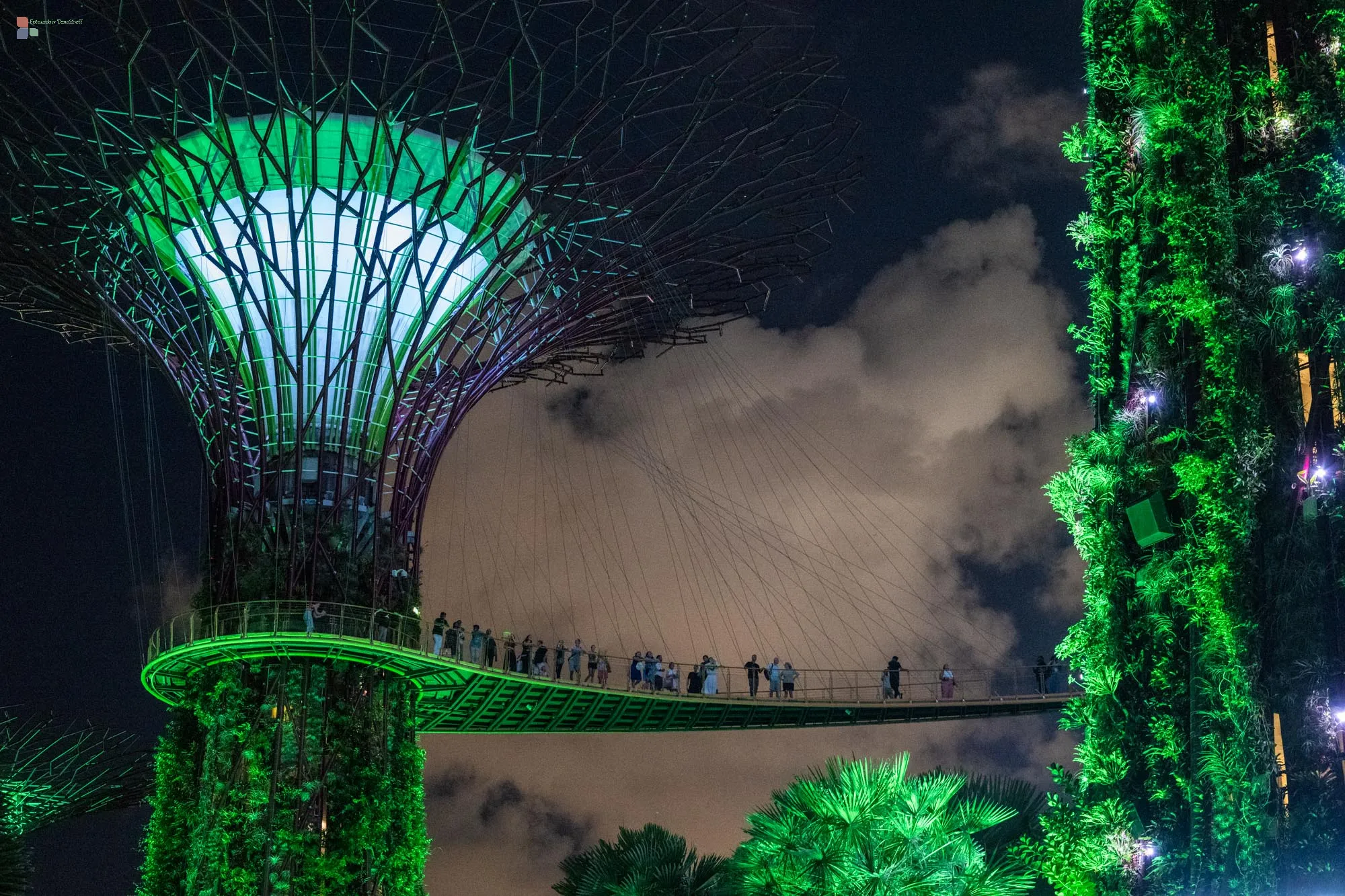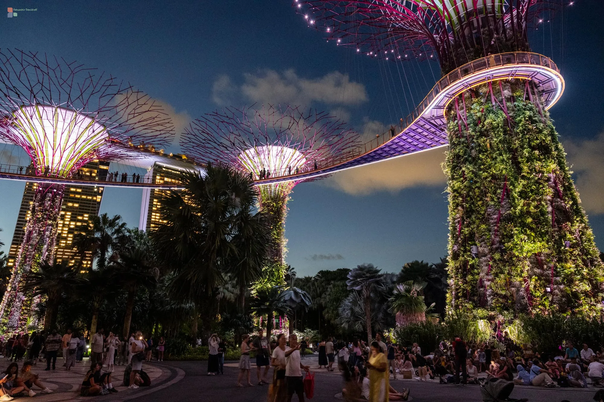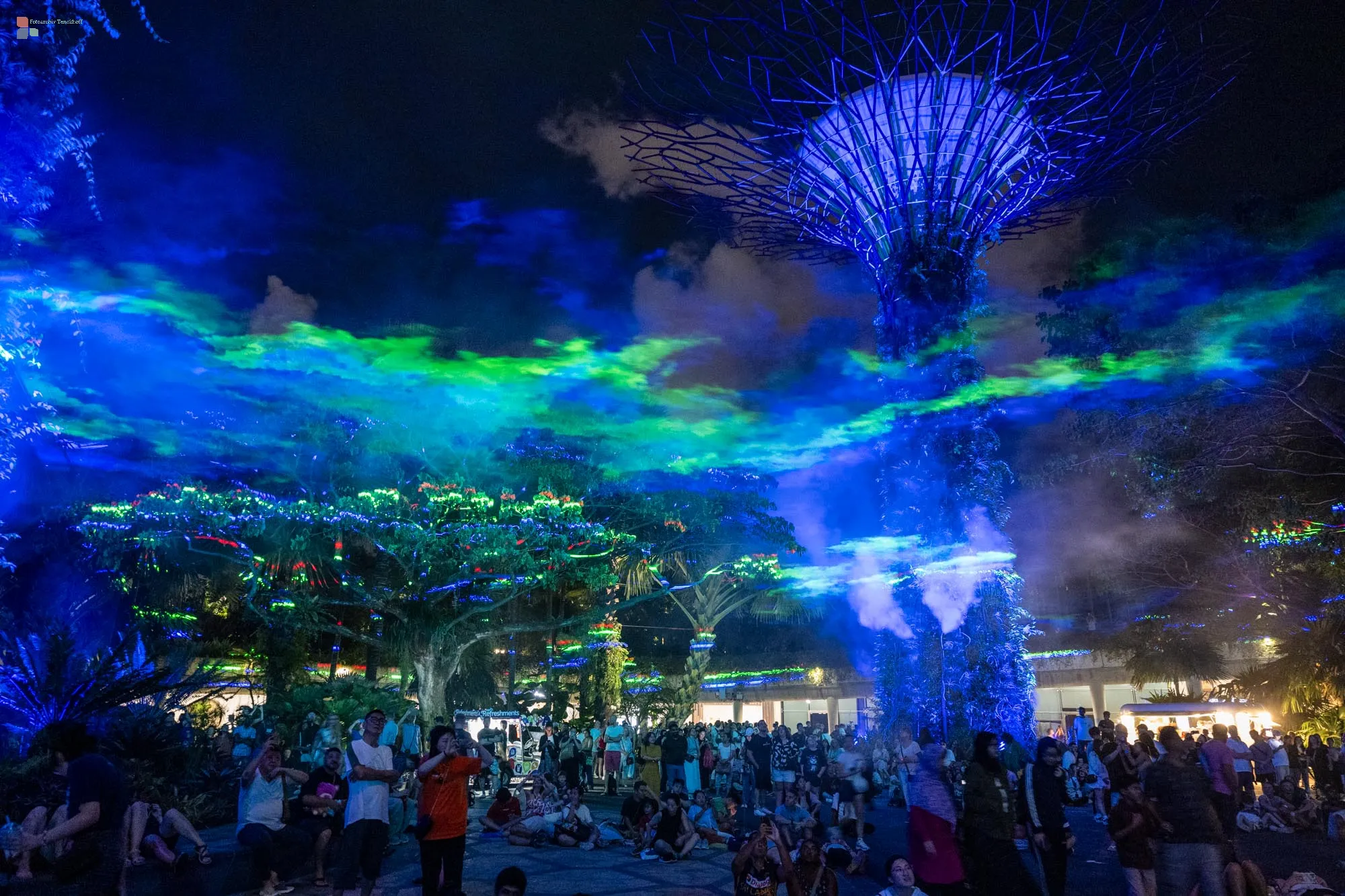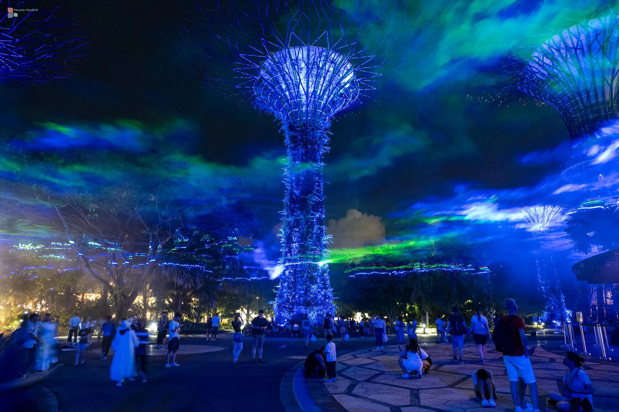 Dort, wo die riesigen, künstlichen Bäume – bis zu 50 Meter hoch – wie Fackeln einer anderen Zivilisation aus der Erde ragen, wurde die Nacht zur Offenbarung.