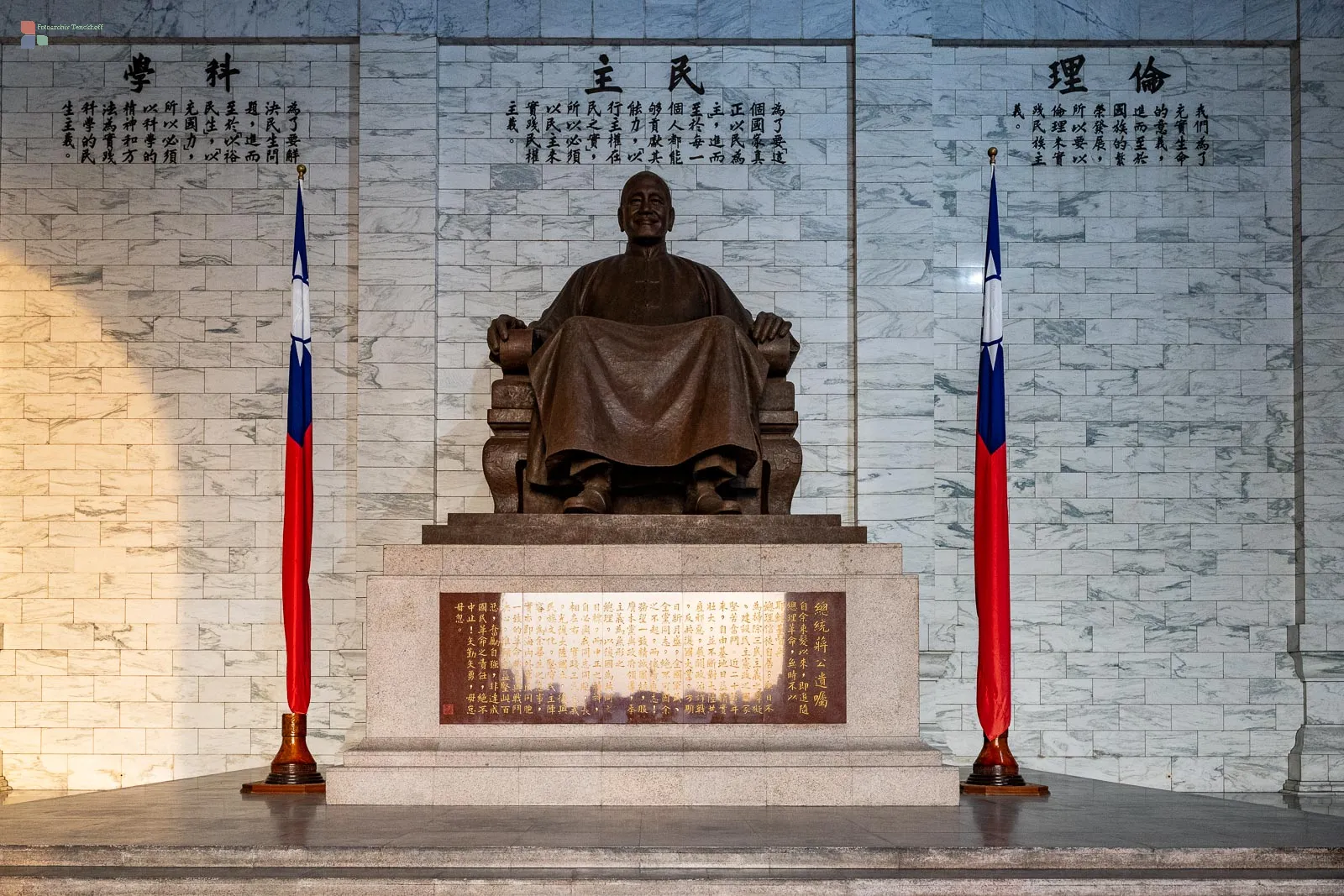 Das eigentliche Memorial erinnert nicht von ungefähr an das Lincoln Memorial in Washington D.C.: Eine monumentale Halle mit einer sitzenden Statue des ehemaligen Präsidenten – eine bewusst gewählte architektonische Parallele, die Chiang Kai-sheks Rolle als Führer und Symbolfigur betonen soll. Der Raum ist beeindruckend, fast ehrfurchtgebietend. An den Wänden Zitate, Devotionalien, Wachen.