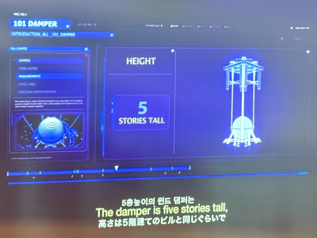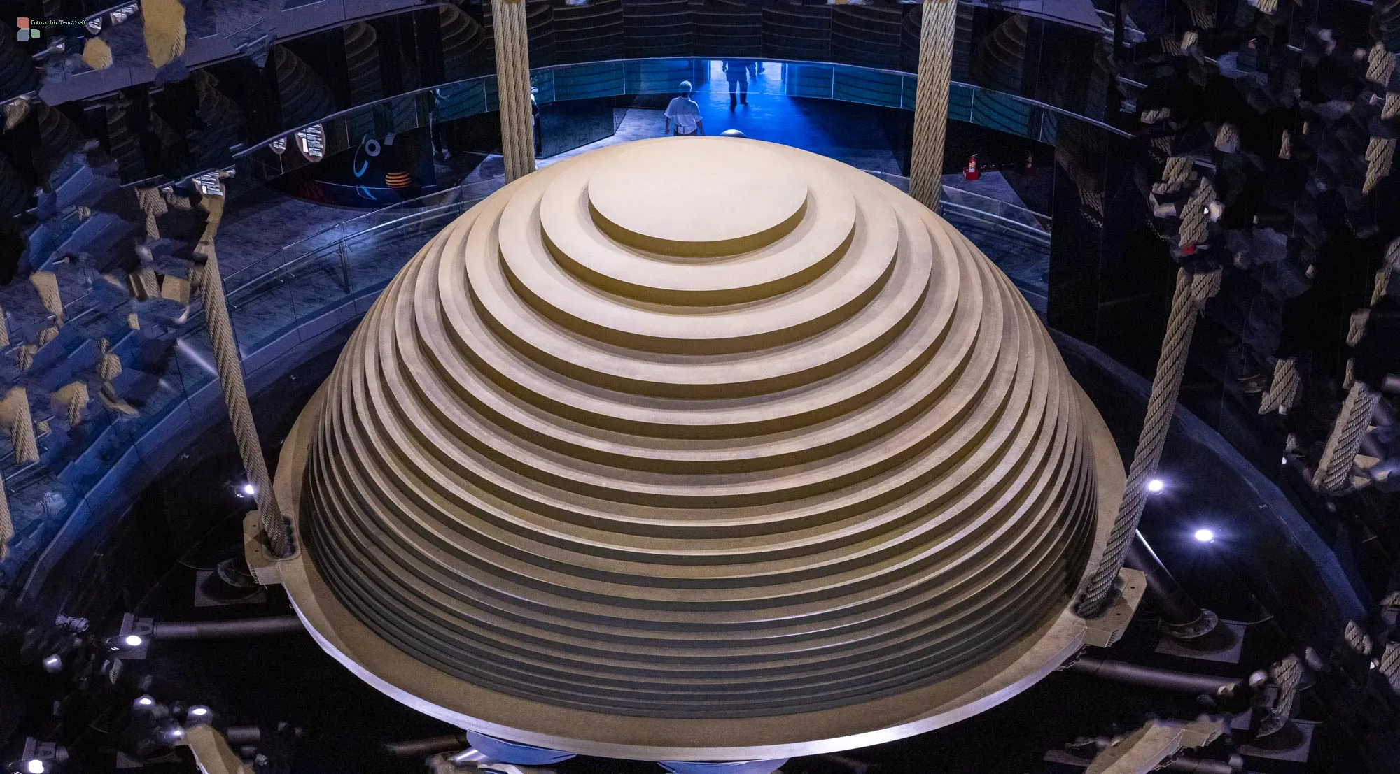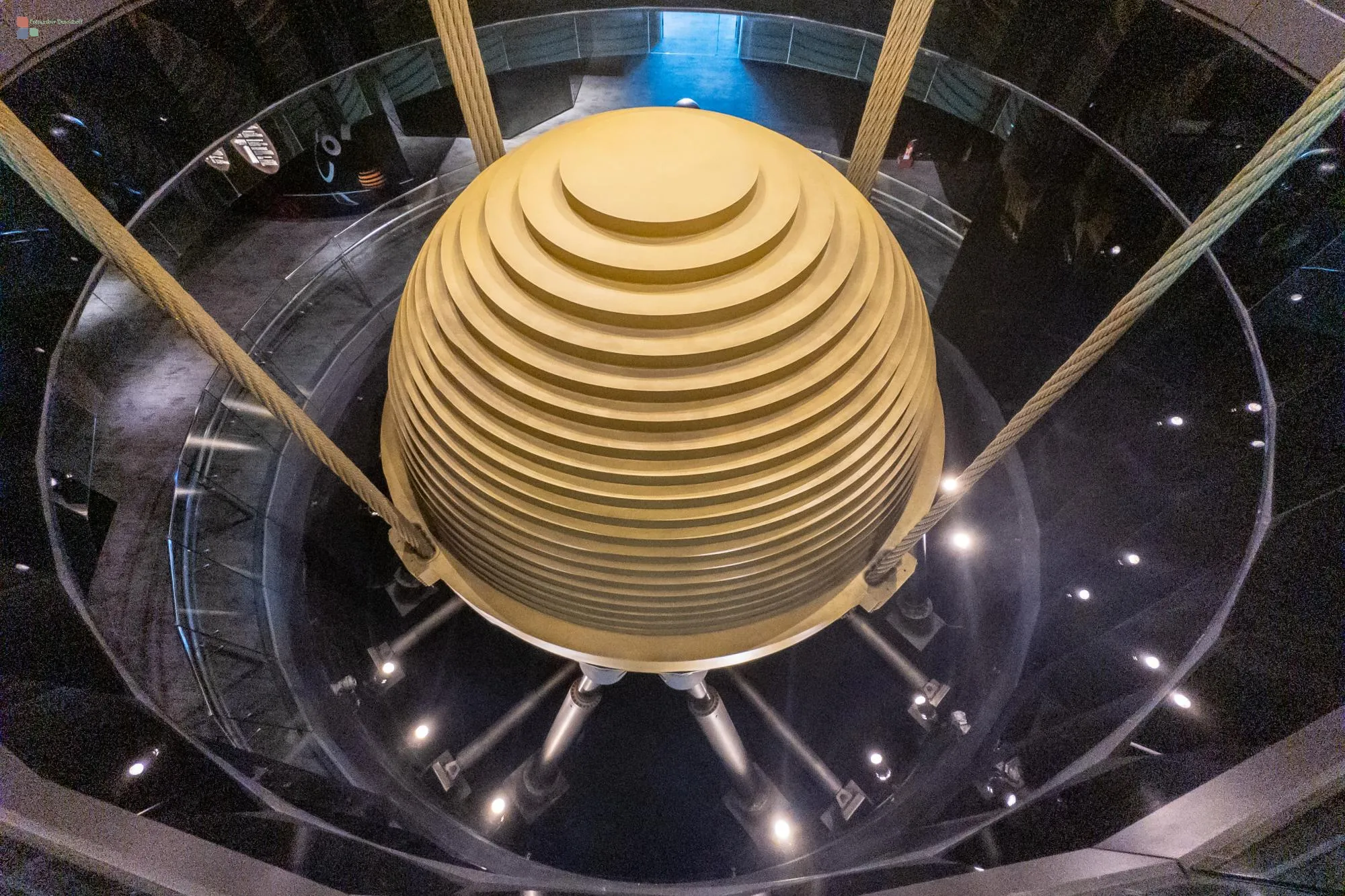 Doch was diesen Wolkenkratzer wirklich einzigartig macht, ist das, was im Inneren schwingt: ein 728 Tonnen schwerer Dämpfer, eine goldene Stahlkugel von 5,5 Metern Durchmesser, die wie das Herz des Turms zwischen dem 87. und 92. Stock pendelt. Sie gleicht Wind- und Erdbebenbewegungen aus – und demonstriert, wie man mit Ruhe und Masse den Kräften der Natur begegnet.