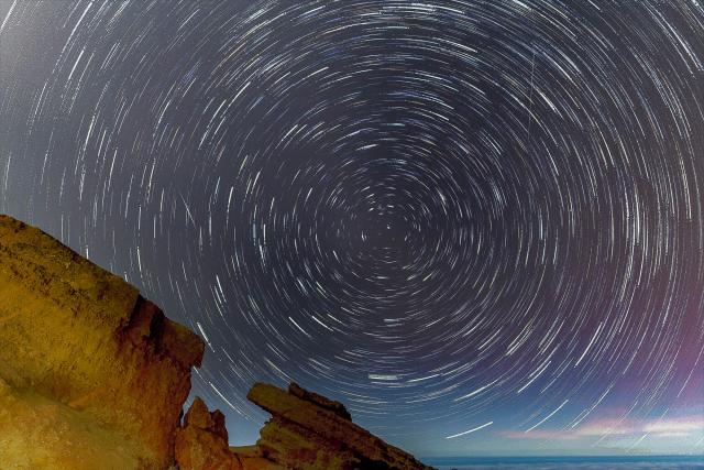 In diesem Beitrag: Startrails mit Felsen über dem Atlantik