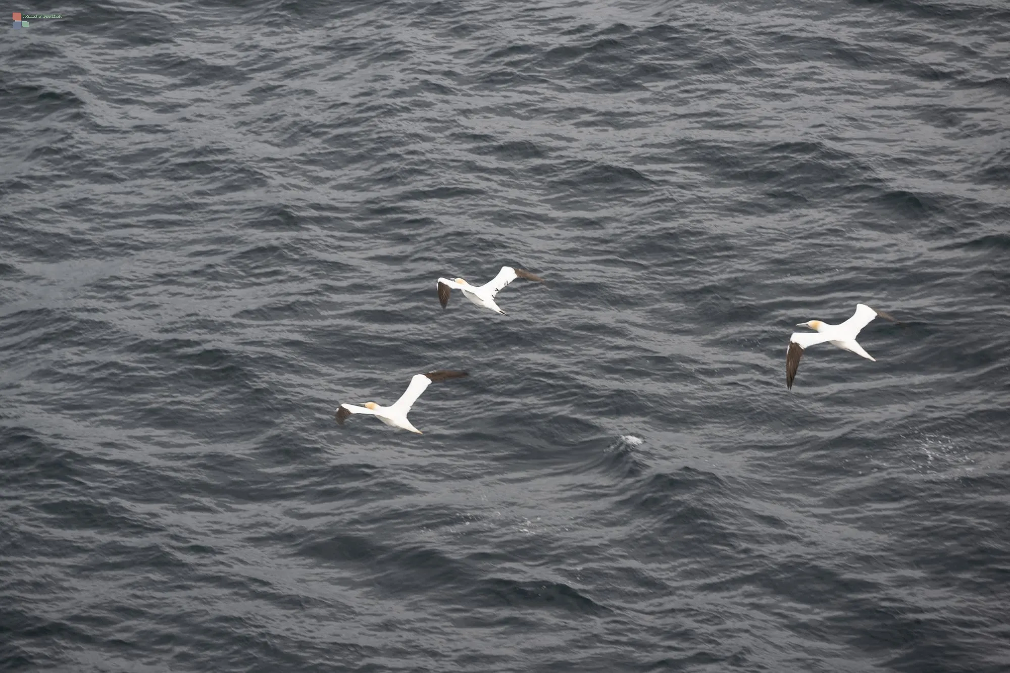 Wo die Nordsee in den Nordatlantik übergeht kann man sie mit etwas Glück vom Schiff aus sehen, die schottischen Shetlandinseln. Basstölpel und Eissturmvögel, die tief über dem Meer fliegen, kündigen die nahenden Küsten bereits an und schließlich zeigen sich vom Schiff aus am westlichen Horizont in dem Gemisch aus dunklen und hellen Passagen erste Strukturen. Man erkennt die schroffen Steilküsten, die gute Nistmöglichkeiten für Seevögel bieten.