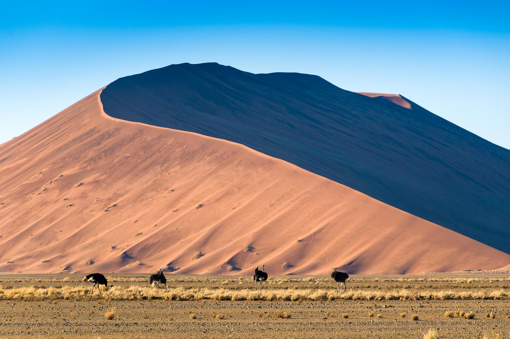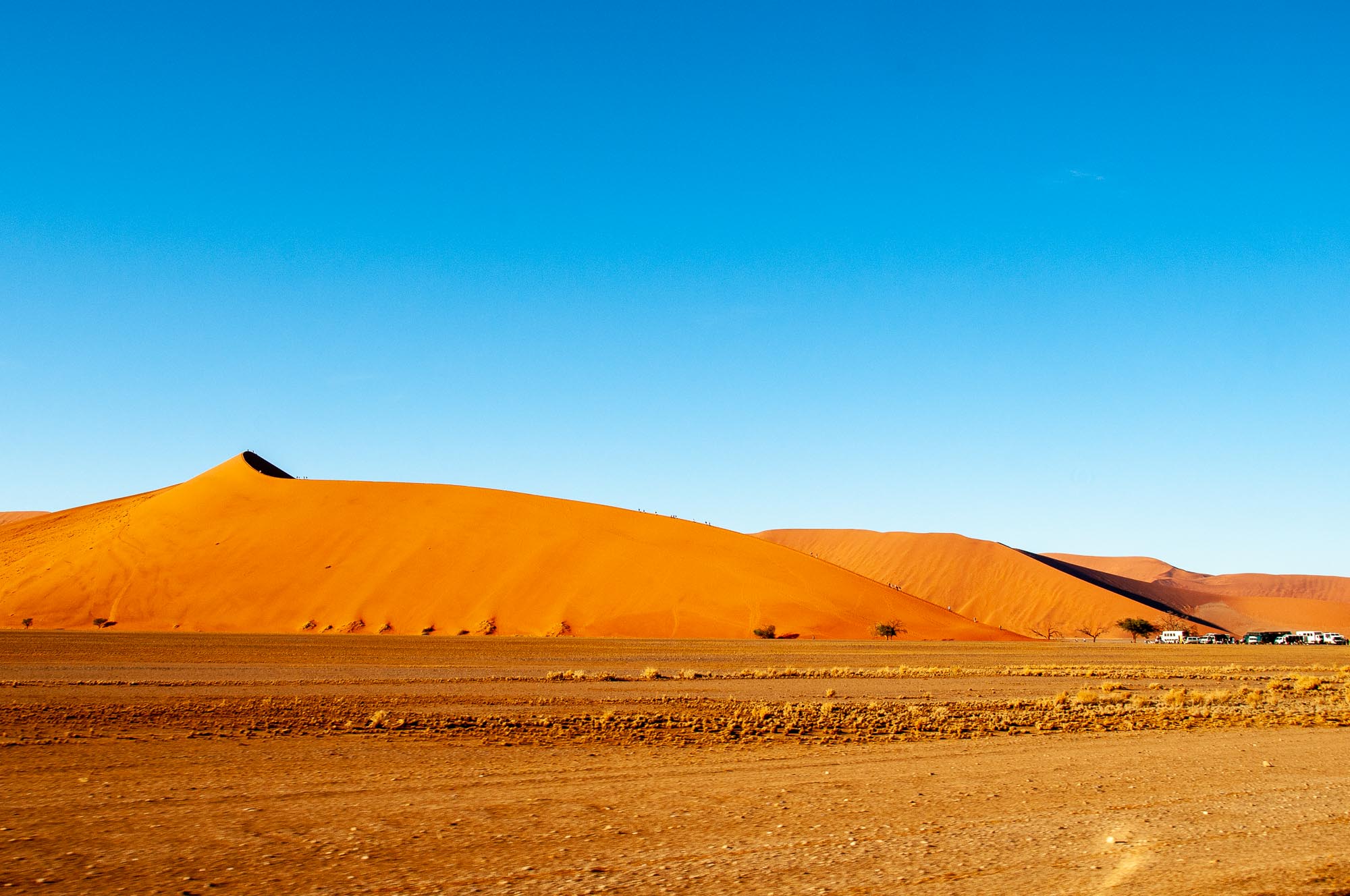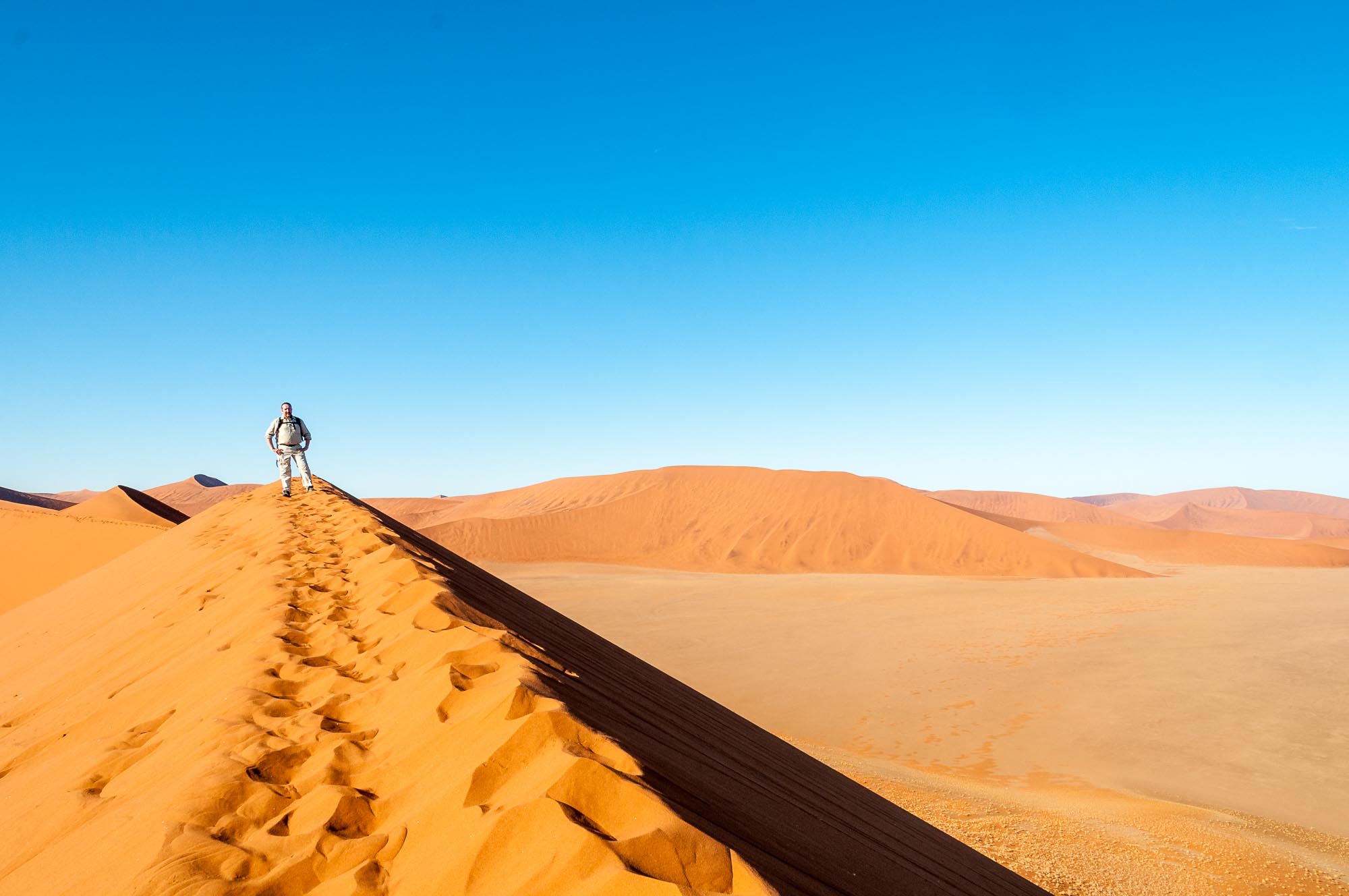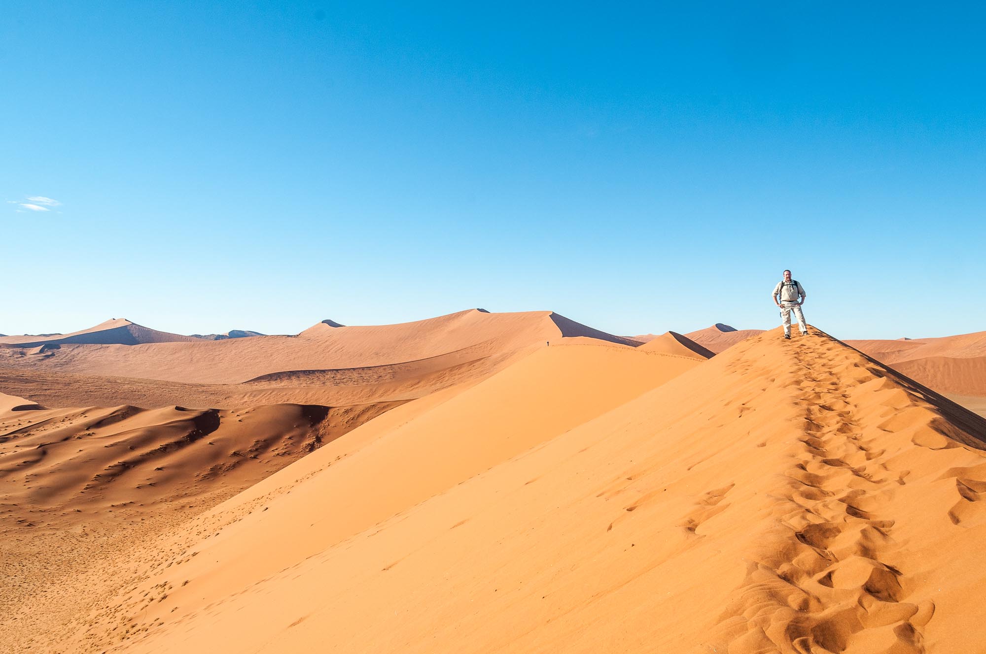 The dune 45 is something special because it belongs e.g. to the few dunes in the Namib that can be climbed. There is a good reason why the ascents are regulated, because footprints on the magnificent dune ridges take a long time to be leveled by wind and weather. A terrible thought, imagine the attached photos littered with traces ...