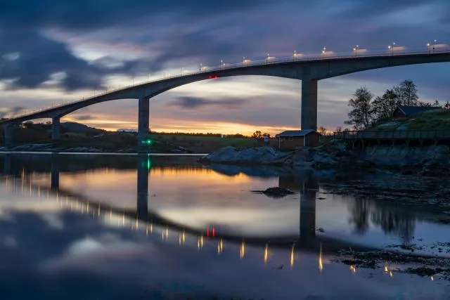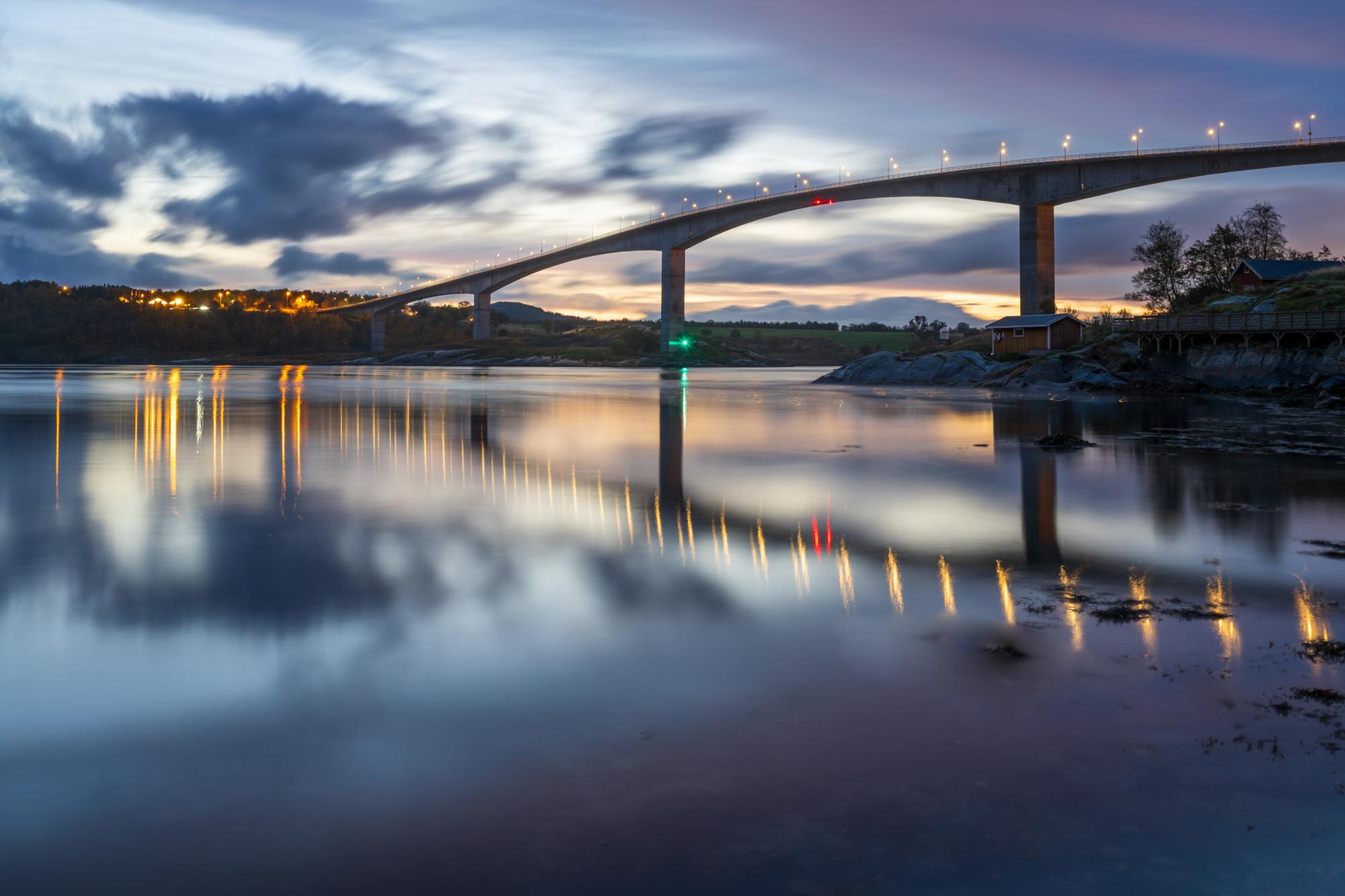 The weather was mixed when we visited Saltstraumen, but Beate, the friendly owner of our accommodation let us know in time for the blue hour that the setting sun was leaving Saltstraumen with a magnificent play of colors. So I took out the camera and tripod again and went to the Saltstromen to capture the evening lighting atmosphere.