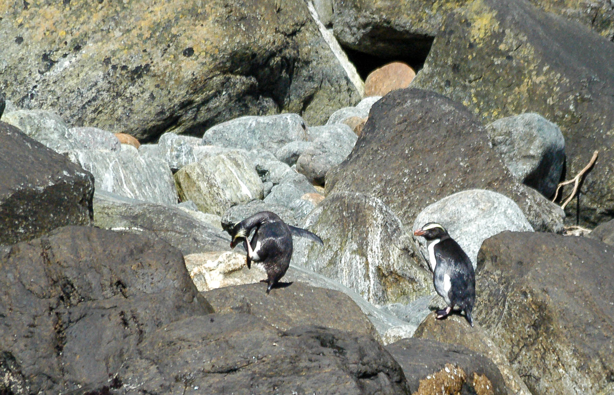 During our trip, we were fortunate to photograph these fascinating birds from a boat as they rested on the coastal rocks. The rugged, craggy shores of the Fiordland region and New Zealand's South Island provide ideal habitats for these shy penguins. They nest in dense forests and remote beaches, where they raise their chicks and seek shelter from predators.