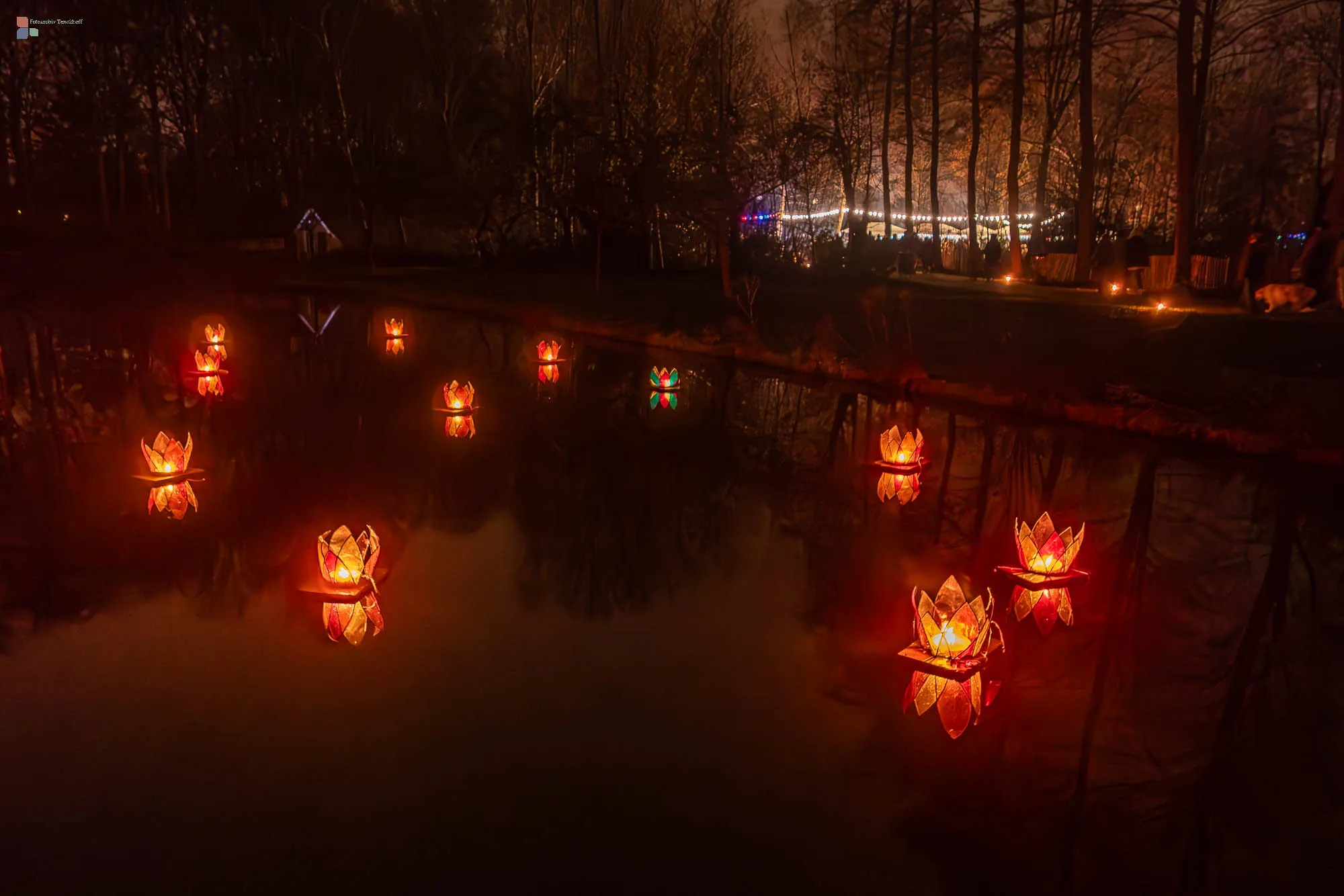 Eine mystische Atmosphäre hatten die Organisatoren am 14. Dezember im Park des schönen Belgischen Ortes Mechelen geschaffen. Gleich beim Einstiegspunkt verzauberte die Lichtprojektion eines Tanzpaars auf einem Wasserschleier die Zuschauer und die dazu passenden sanften Musikklänge schufen einen wunderbaren Augenblick der Versenkung.