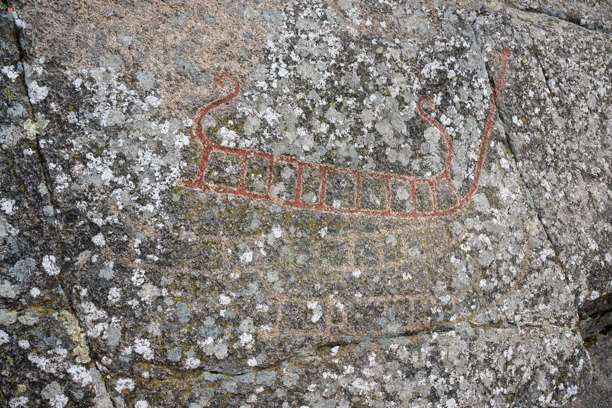 Und schließlich gelangt man auf Bornholm bis in die Bronzezeit, die hier etwa vor 3000 Jahren datiert. Bei den gefundenen Felsritzungen in dem Gebiet Allinge-Sandvig nimmt der Ort Madsebakke eine bedeutende Stellung ein und gehört zu den wichtigsten Fundstätten von Petroglyphen der Bronzezeit in ganz Nordeuropa. Man sieht hier 12 mehr oder minder stark verwitterte Schiffsbilder sowie Fußabdrücke, Radkreuze und Schälchen, von denen einige Ablichtungen weiter unten zu sehen sind.. Die Schiffe haben unterschiedliche Formen und stammen aus verschiedenen Zeitabschnitten. Einige dieser Schiffs-Ritzungen weisen Ähnlichkeiten mit dem ältesten in Skandinavien um 350 v. Chr. gefundenen realen Schiff auf, dem Hjortspringboot.