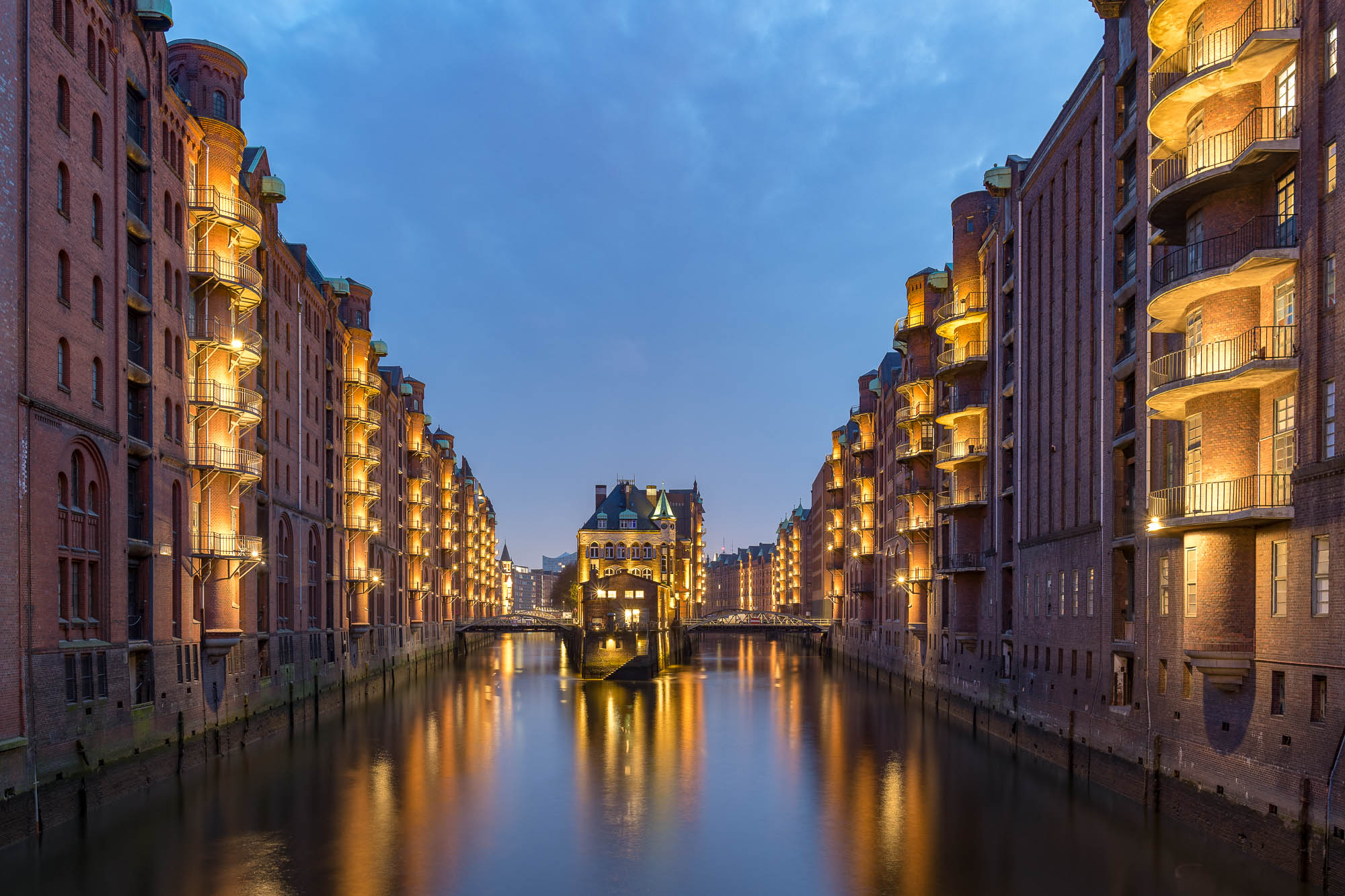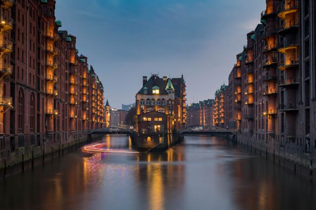 In jeder größeren Stadt gibt es besondere Plätze, von denen aus besondere Fotos gelingen können. Einige dieser bekannten Fotospots haben wir in Hambug ge- und besucht. Bekannt als höchst fotogen ist z.B. das Schlösschen in der Speicherstadt. Ideal für Fotografien ist hier die Blaue Stunde, da die Lichtquellen rund um das Motiv überwiegend orange strahlen, was einem sehr schönen Farbkontrast zum immer dunkler werdenden Blau des Himmels ergibt. Allerdings hat man damit auch nur ein kleines Zeitfenster von vielleicht 15 Minuten, so dass man schon den Tag über im voraus planen muss, von welchem Ort wohl die schönsten Aufnahmen gelingen könnten.