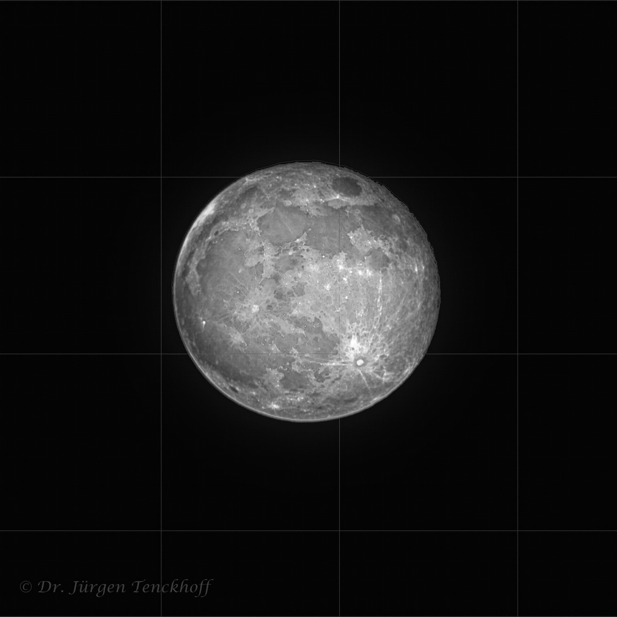 Um möglichst viele Details in einem astronomischen Foto sichtbar werden zu lassen wird gerne Stacking eingesetzt. Dazu gibt es verschiedene Softwareprogramme, die mehrere Aufnahmen einer Serie miteinander verrechnen. Bei diesem Supermond wude eine Serie mit insgesamt 70 Aufnahmen im Abstand von 4 Sekunden mit gleichen Belichtungswerten (s.o) aufgenommen. Die Kamera wurde während dieser Aufnahmeserie nicht bewegt.