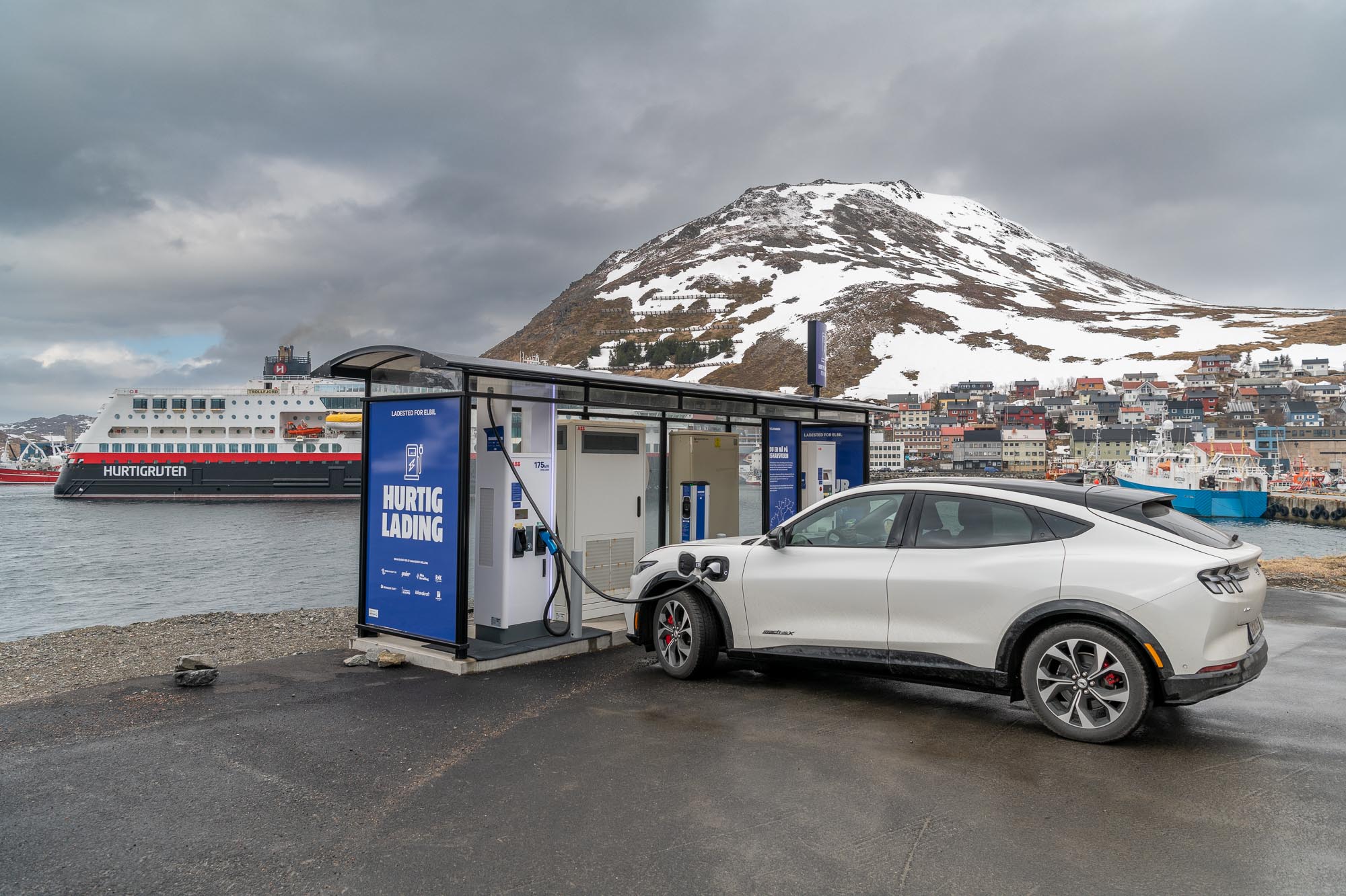 In diesem Beitrag wollen wir uns damit begnügen, Fotos der verschiedenen Lademöglichkeiten zu zeigen. Die reichen von Ladeparks wie in Norwegen, wo wir an einem Standort rund 50 gut genutzte Ladestationen gesehen haben, bis hin zum Laden an den von uns gemieteten Häusern und Hütten, wo wir mit dem mitgeführten Ladegerät an den bereitgestellten 230 V -Steckdosen unseren Mustang häufig kostenlos laden konnten.
