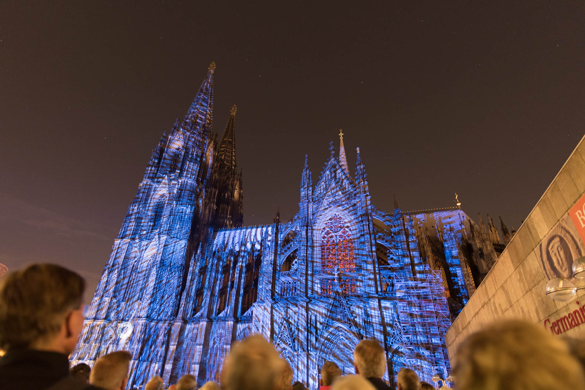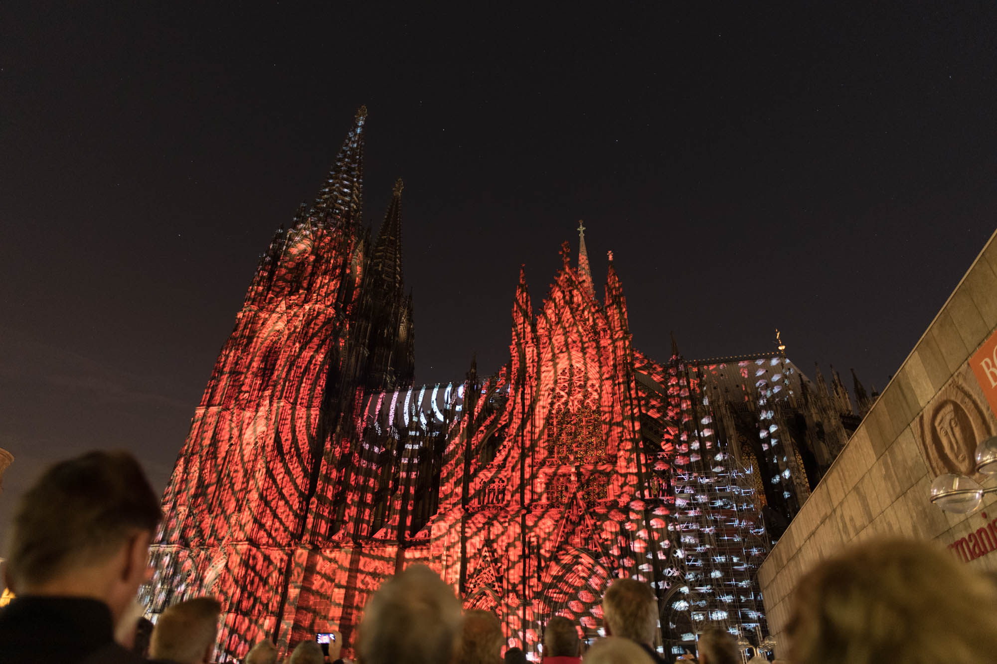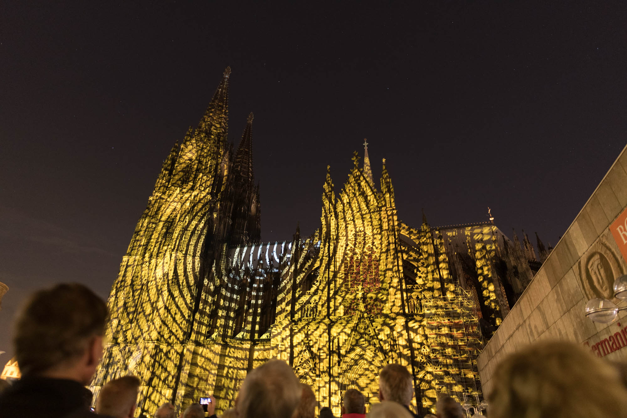 Die Lichtshow war Teil der Kölner Domwallfahrt 2018 und erinnerte an das Ende des Ersten Weltkriegs vor 100 Jahren. Das Künstlerduo Detlef Hartung und Georg Trenz entwickelte die Projektion unter dem Titel Dona Nobis Pacem – „Gib uns Frieden“. Mit Hilfe von 19 Hochleistungsprojektoren verwandelten sie die fast 150 Meter hohe Südfassade in eine bewegte Leinwand, die den Domkörper selbst zur Botschaft werden ließ.