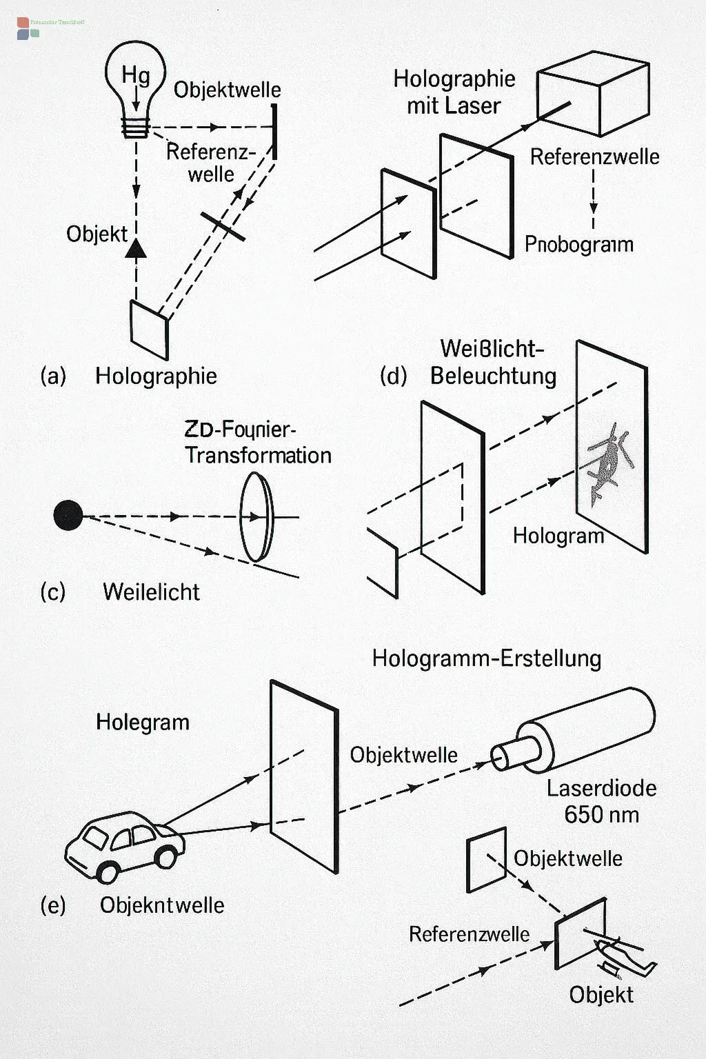 Damals arbeiteten wir mit wassergekühlten Argon-Ion-Lasern auf schweren Optiktischen, umgeben von Linsen, Strahlteilern und auf N₂-Stempeln gelagerten Wabentischen – ein Aufwand, der private Experimente praktisch ausschloss. Heute hat sich das Bild grundlegend gewandelt: Dank kompakter Laserdioden und empfindlicher Aufnahmematerialien lässt sich das Prinzip der Holografie bereits mit kleinem Budget nachvollziehen. Mit etwas Geduld, Dunkelheit und ruhiger Hand können selbst Schülerinnen und Schüler im Rahmen von „Jugend forscht“ oder schulischen Projekten eindrucksvolle Reflexions- oder Transmissionshologramme erzeugen – Experimente, die nicht nur Technikbegeisterung, sondern auch Staunen hervorrufen.