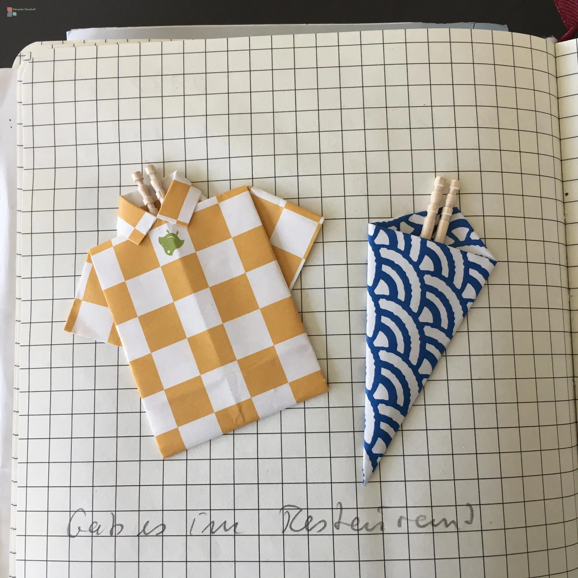 Als letztes seht ihr Zahnstocher die in kleinen Origamifiguren stecken.