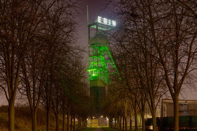 Der ehemalige Wetter- und Seilfahrtschacht Erin 3 ist einer der ältesten noch erhaltenen Hammerkopftürme seiner Art. In Gedenken an den irischen Gründer wurde um diesen Förderturm herum ein keltischer Baumkreis errichtet. Es lohnen sich Aufnahmen bei Tag und auch bei Nacht.