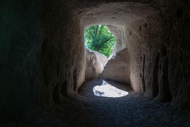 Der Vulkan- & Panoramaweg von Burgbrohl führt direkt durch einige der großen Höhlen hindurch.