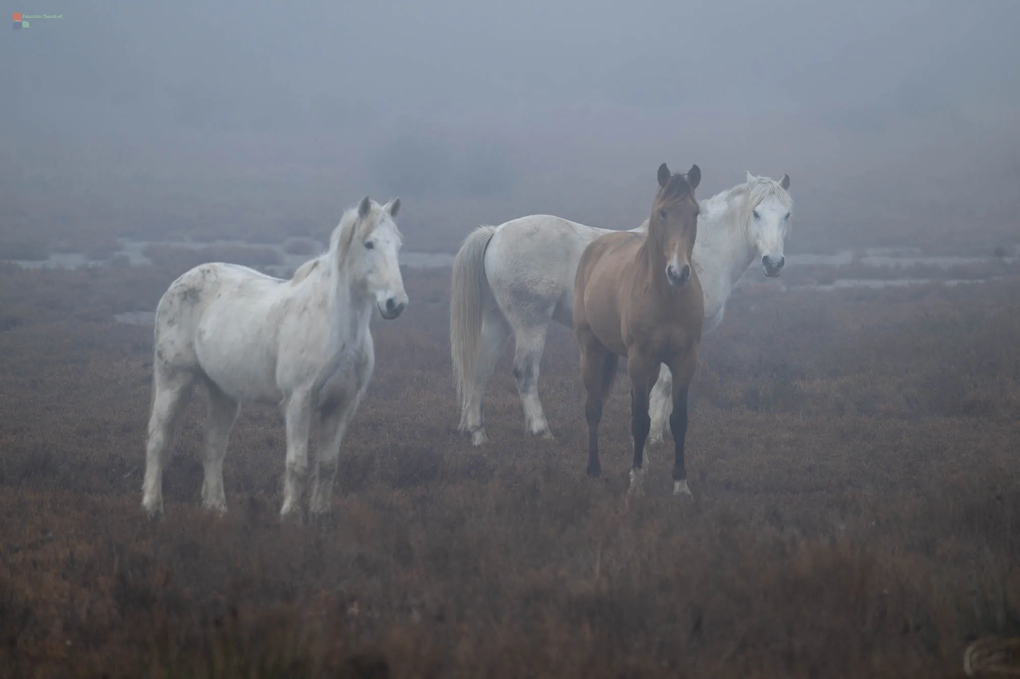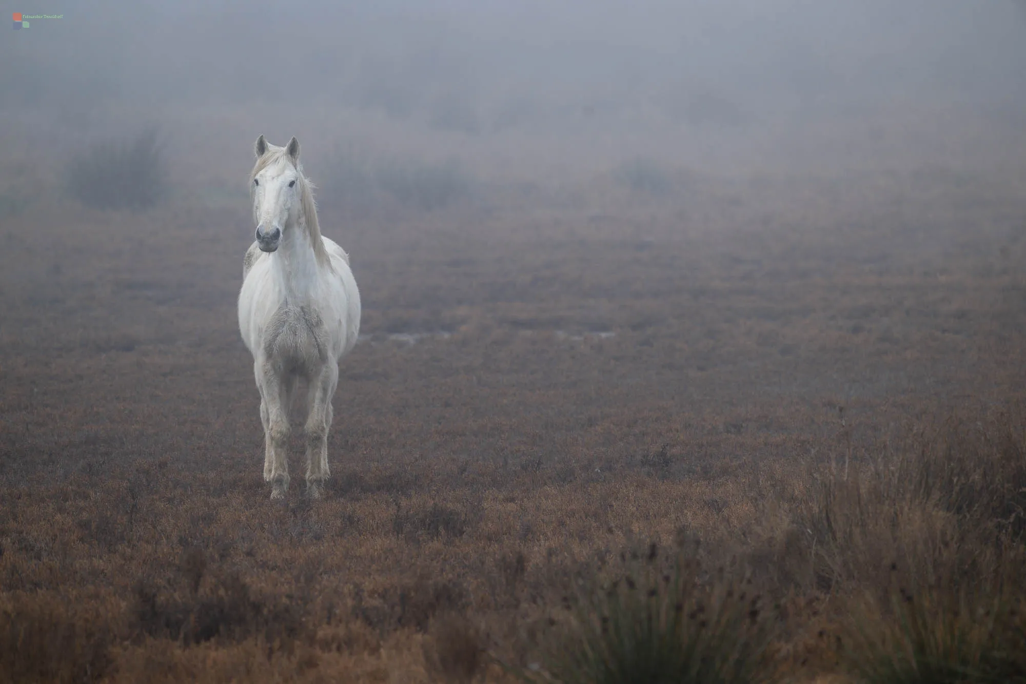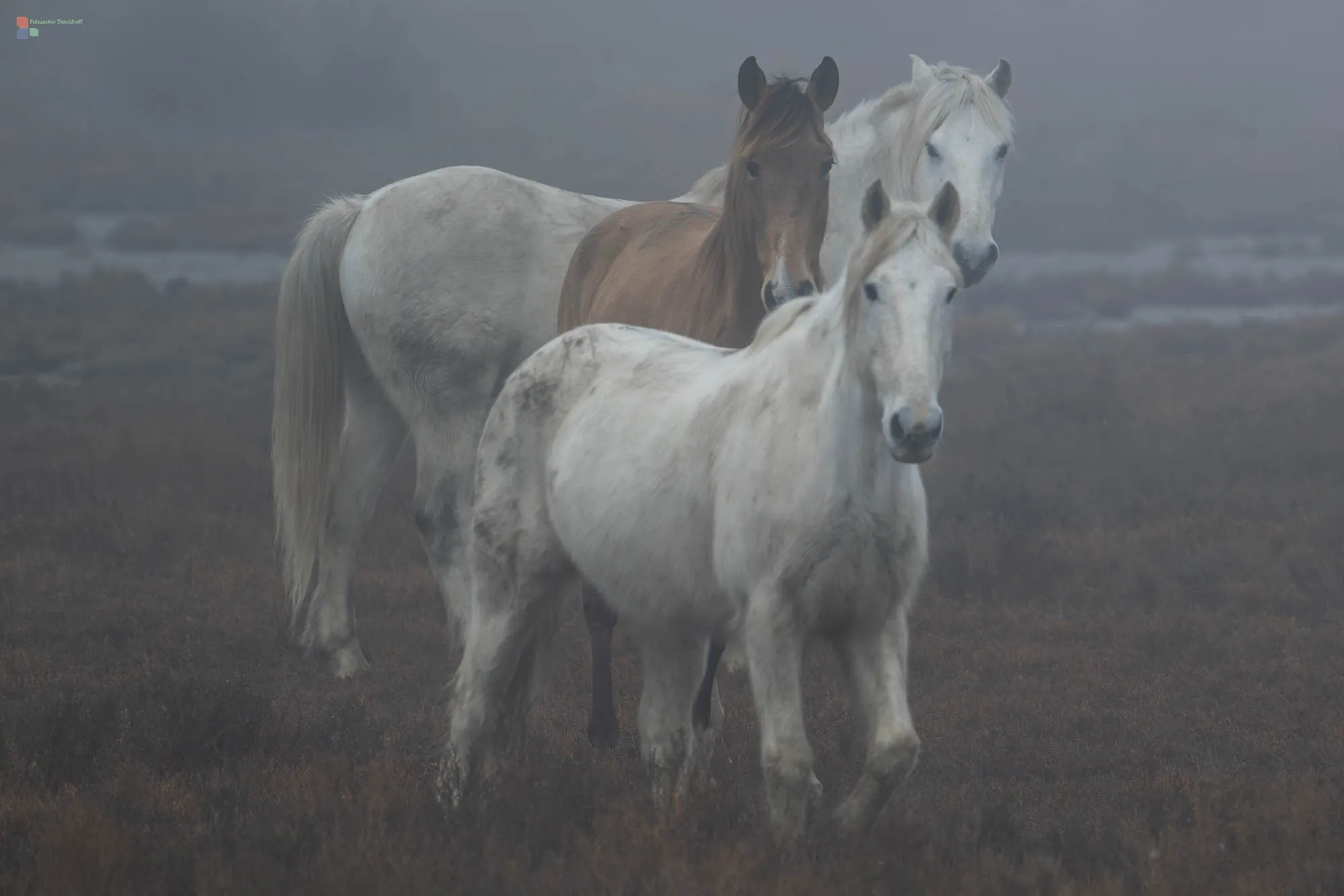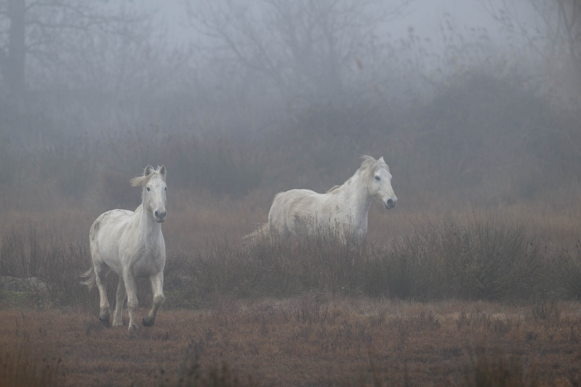 Im Frühnebel des Morgengrauens wirken sie besonders imposant, die Wildpferde der Camargue. Im Galopp tauchen sie unvermittelt aus dem Frühnebel auf, kraftvoll und unbändig. Von den Einheimischen werden sie die "Weißen Pferde aus dem Meer" genannt, da man sie mit geschlossenen Nüstern beim Weiden unter Wasser beobachten kann. Ähnlich wie bei Elchen wird so verhindert, dass Wasser in ihre Lungen eindringen kann.