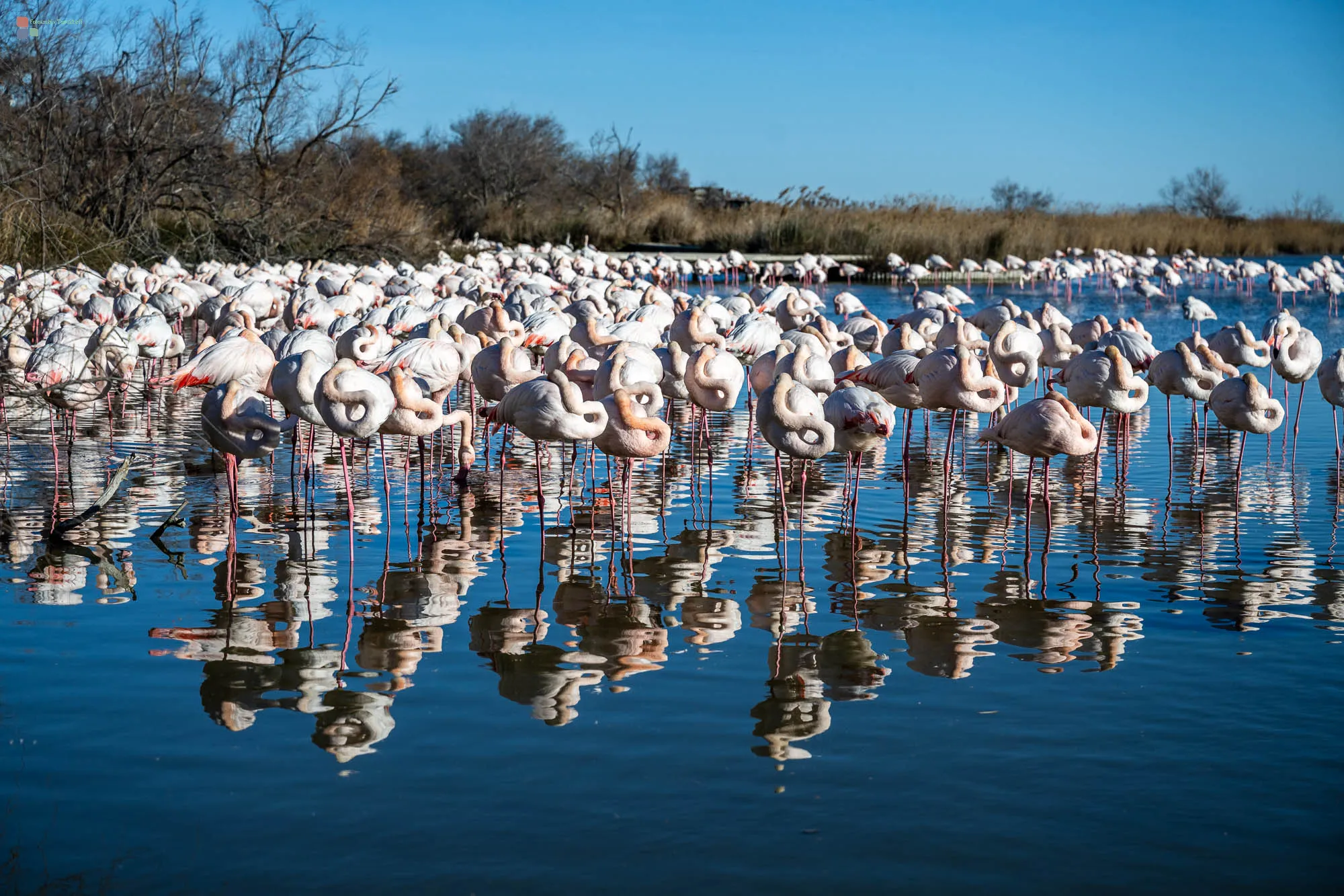 In der Camargue im Süden Frankreichs befinden sich die letzten Brutplätze der Rosaflamingos. Bis zu 45.000 Exemplare beherbergt die Brutkolonie. Sie ist damit die größte Brutstätte der vor dem Aussterben bedrohten Vogelart in Europa.