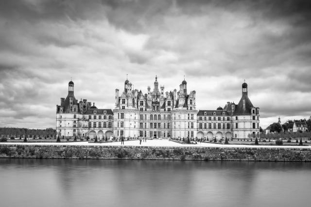 Die hohen Kontraste der Infrarotaufnahmetechnik verleihen Frankreichs bekanntem Schloss eine fast bedrohliche Anmutung. Der Unterschied zu den üblichen Aufnahmen ist erheblich. Dabei läßt die Entwicklung der realisierten raw-Formate noch genügend Spielraum, um gewünschte Effekte zu verstärken oder abzuschwächen. Die Kamera wurde mit einem 720nm-Infrarot-Schraubfilter vor dem benutzten Objektiv eingesetzt.